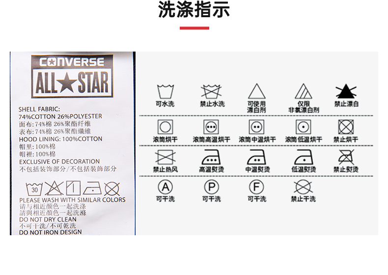 Converse匡威童衣童衣春男女童纯棉星星印花线圈连帽卫衣CV2212113