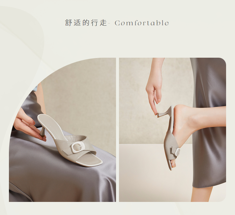 natursun女鞋高跟鞋年夏季外穿法式方头名媛气质女凉拖鞋N24328210