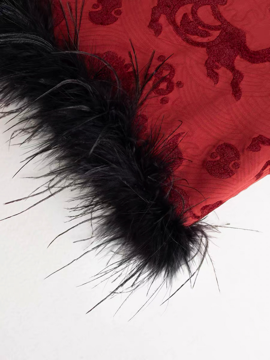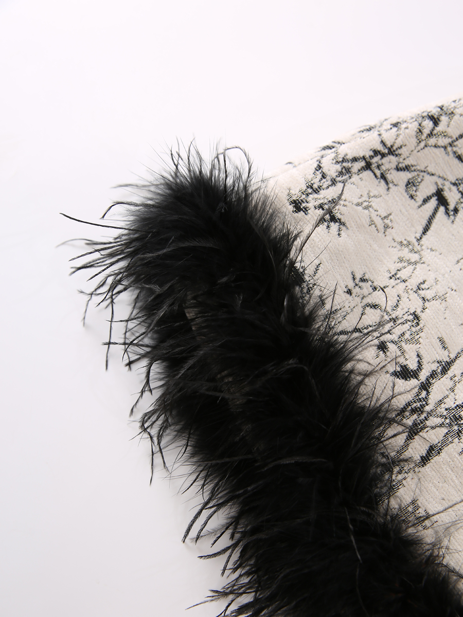 面料:100%聚酯纤维,拼接部分为鸵鸟毛