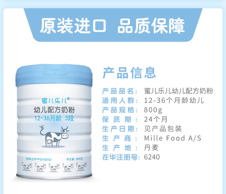 Mille麦蔻【蜜儿乐儿3段800g】12-36个月幼儿配方奶粉【New】【麦蔻】