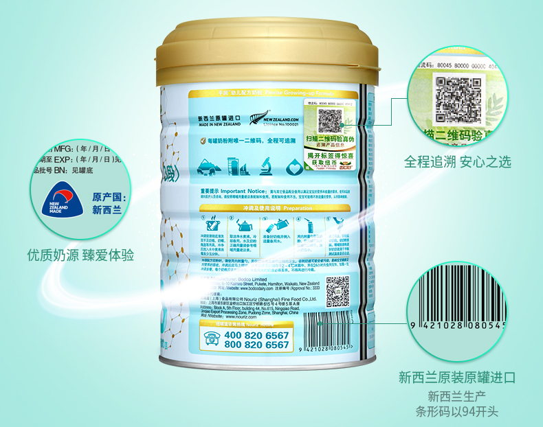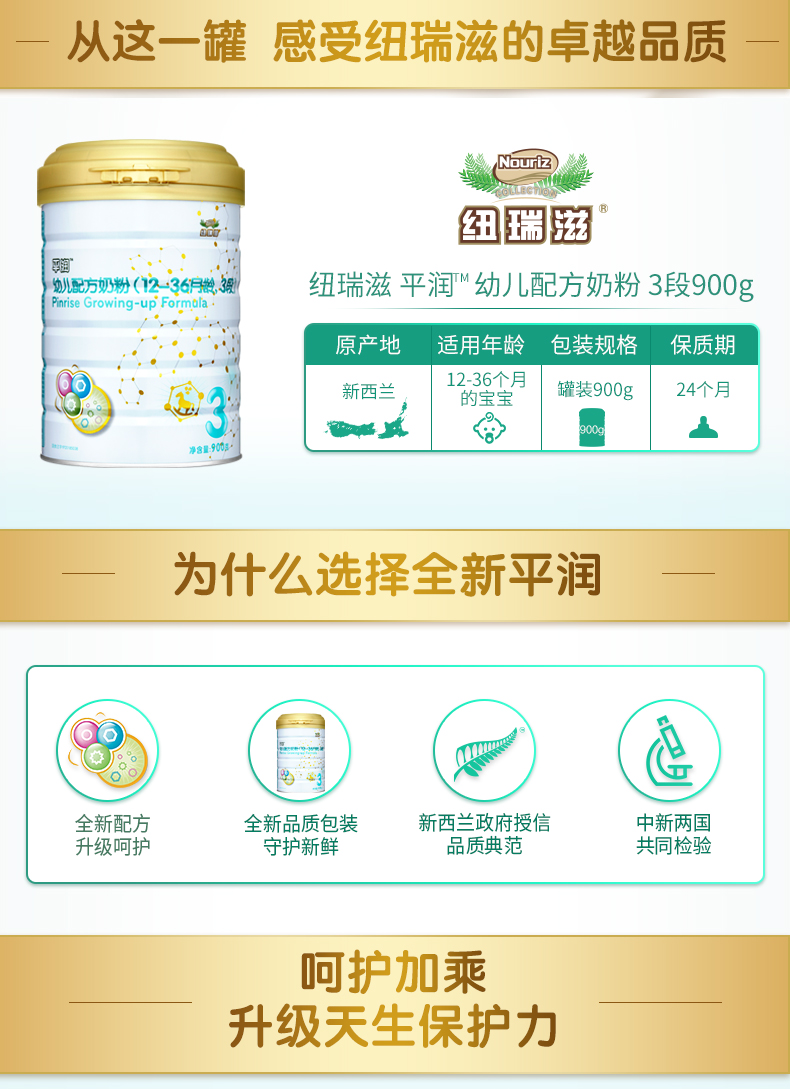 纽瑞滋幼儿配方平润奶粉1/2/3段900克*6罐(12-36个月 新西兰原罐进口)含乳铁蛋白【纽瑞滋】