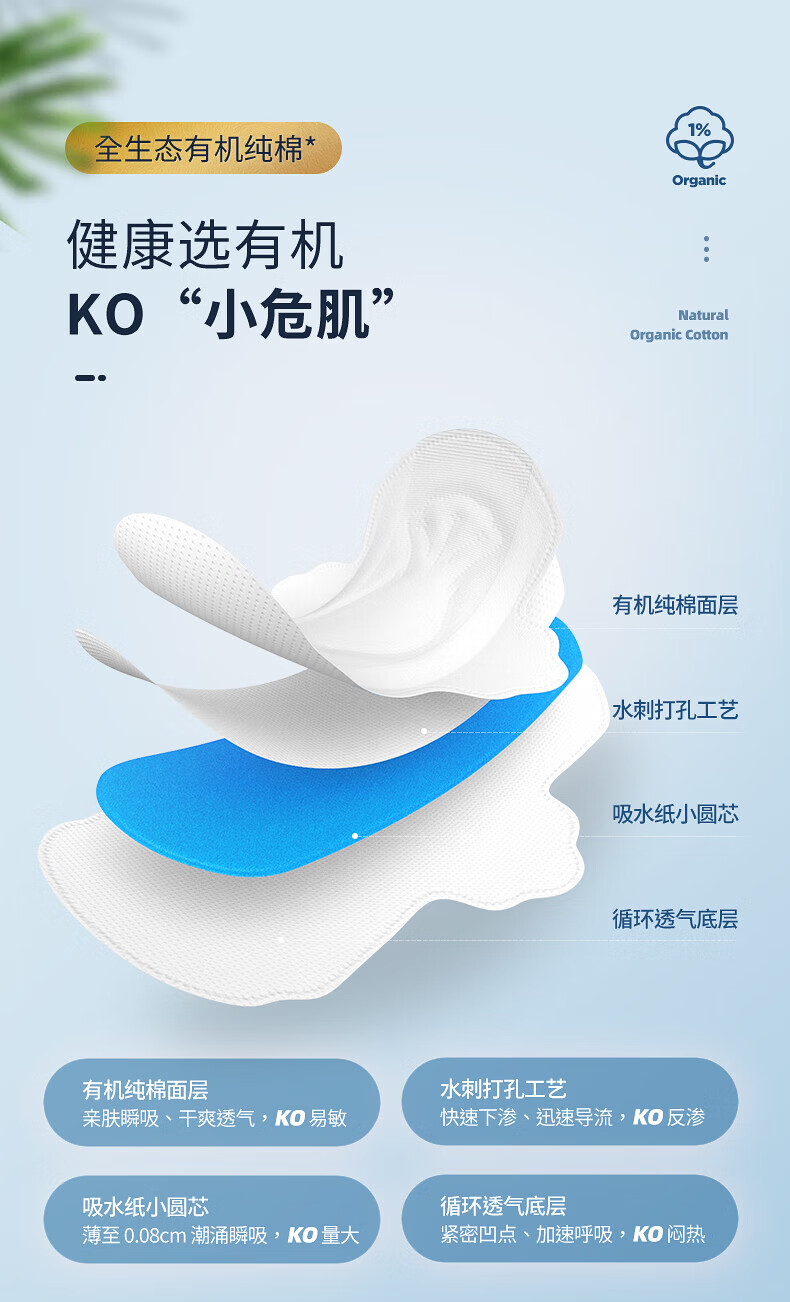 自由点有机纯棉极薄夜用12片卫生巾/份