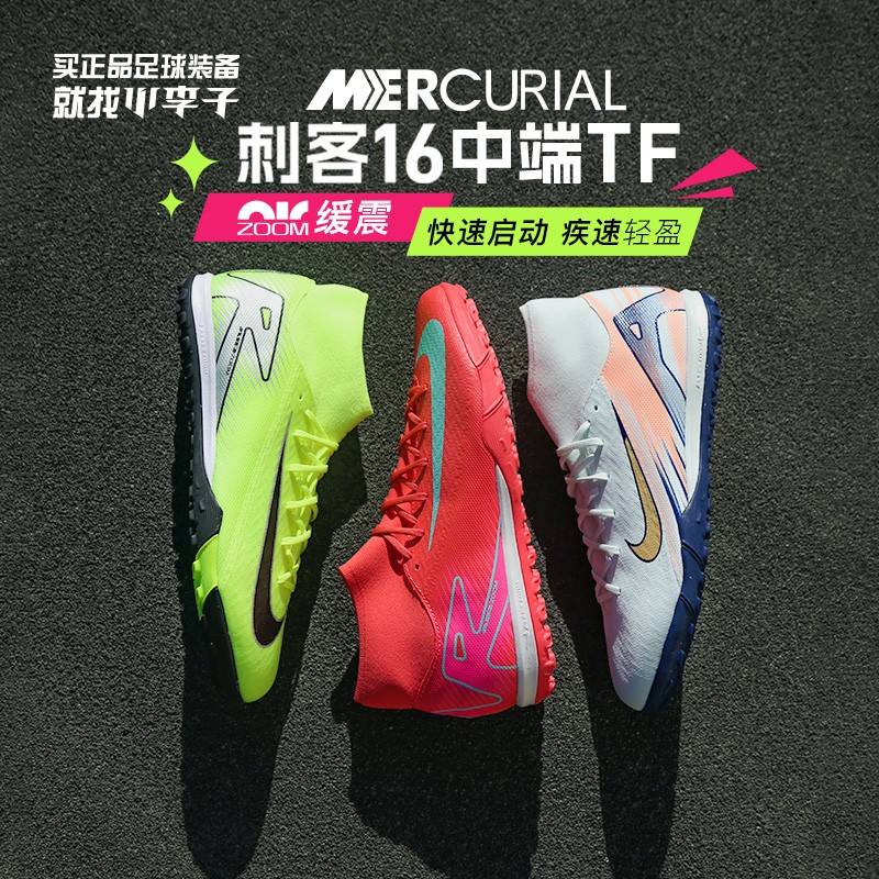 小李子耐克刺客16nu1 AIR ZOOM中端高帮TF碎钉足球鞋男HF1606-500