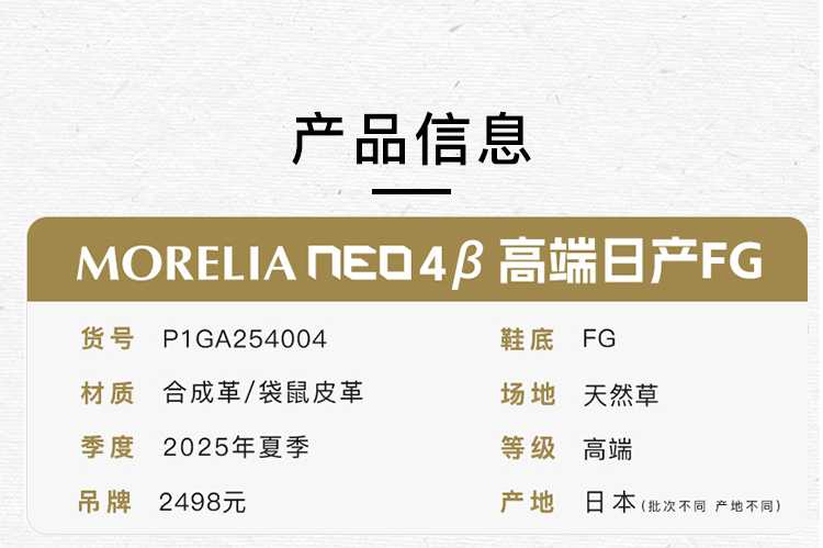 小李子美津浓莫雷拉MORELIA NEO 4 β高端日产FG长钉足球鞋成人男
