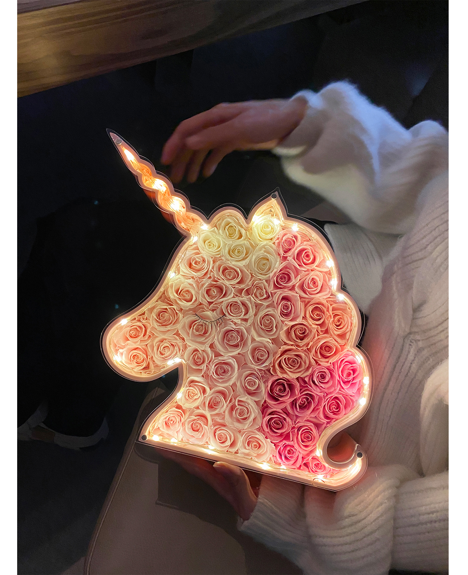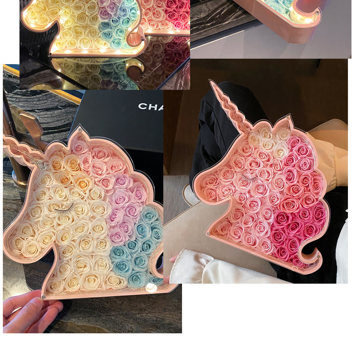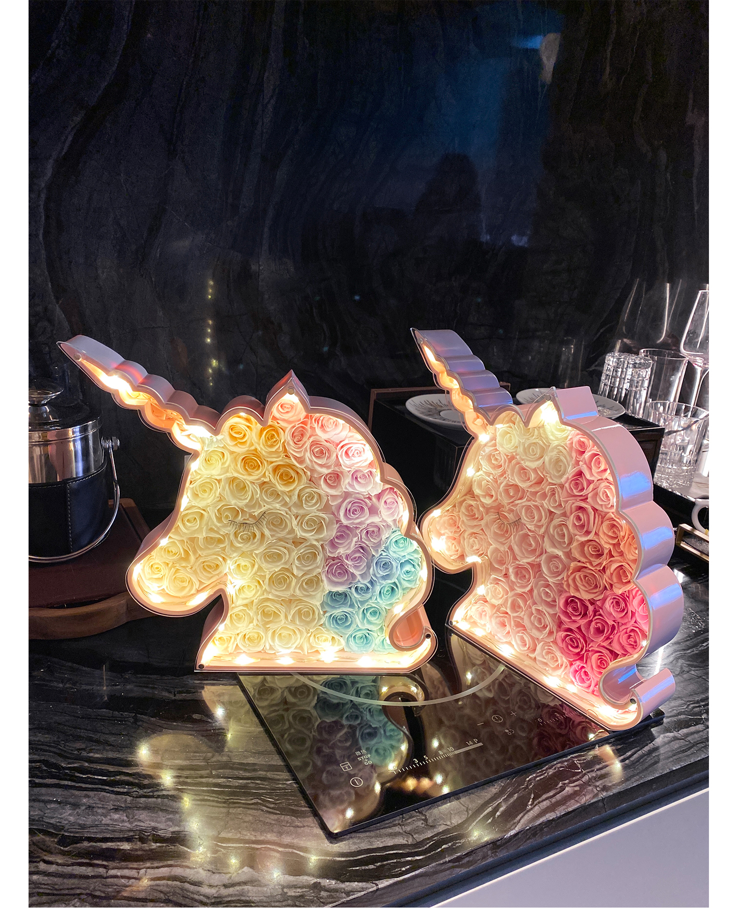 VBEINGS花语 永生花独角兽 带灯礼盒送女友爱人表白生日礼物摆件