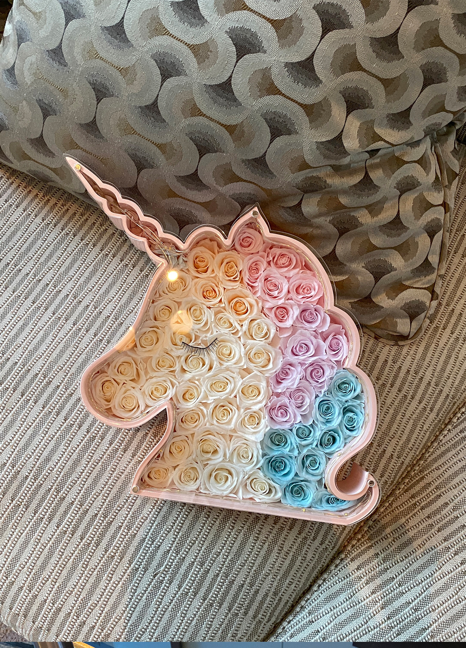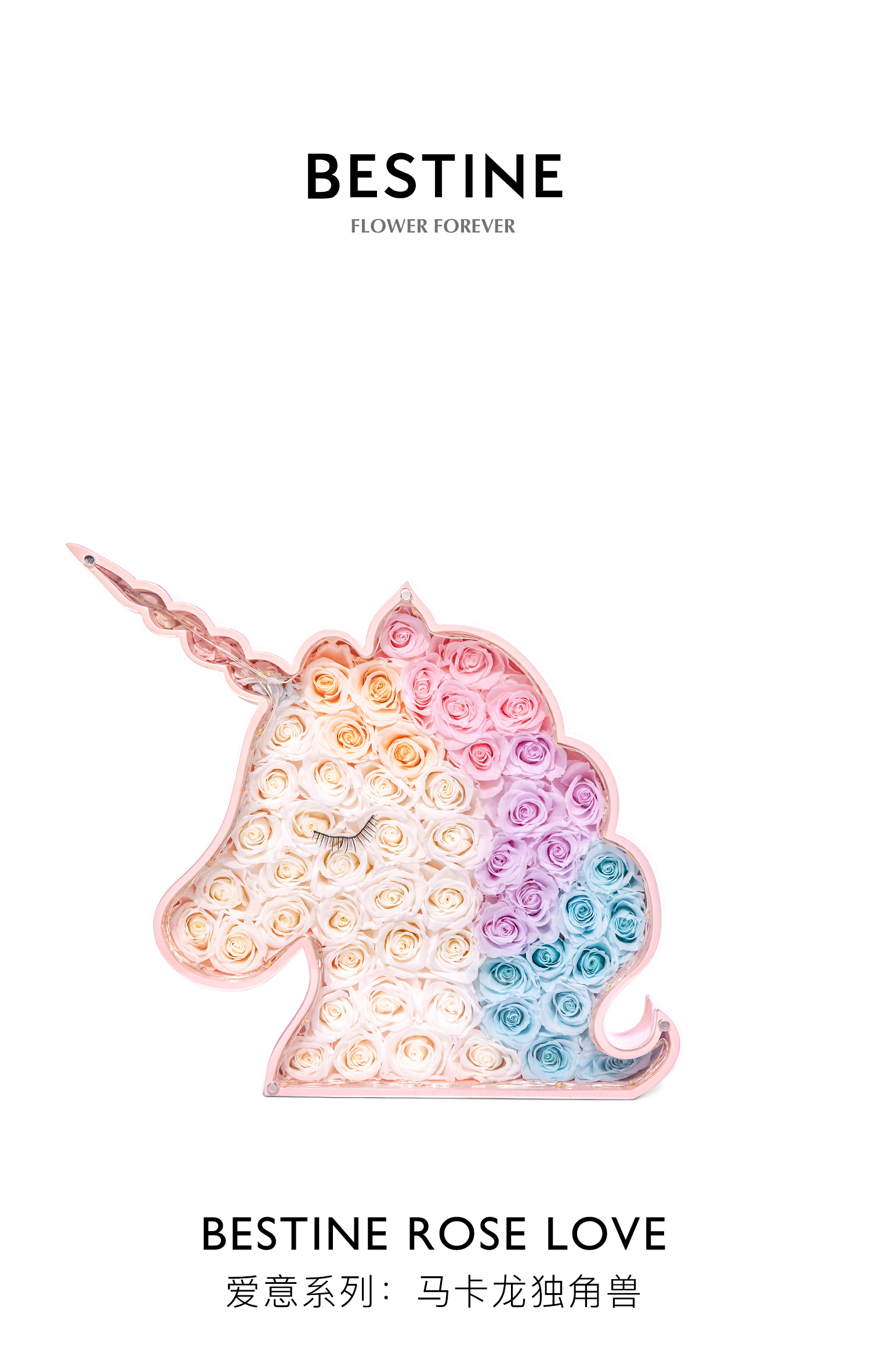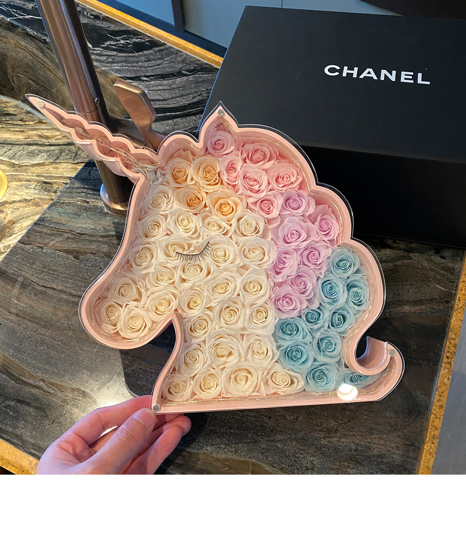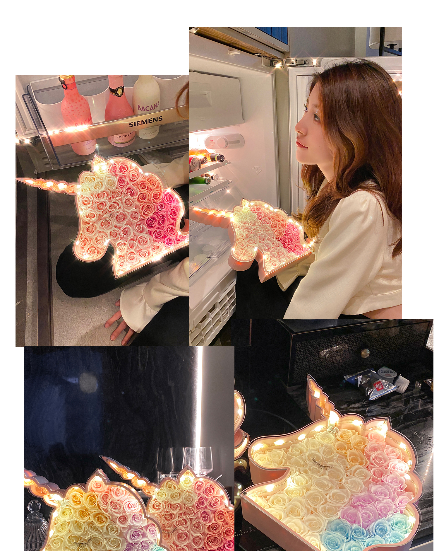 VBEINGS花语 永生花独角兽 带灯礼盒送女友爱人表白生日礼物摆件