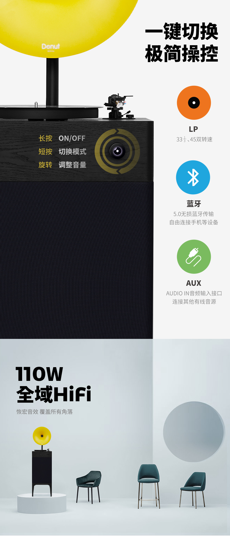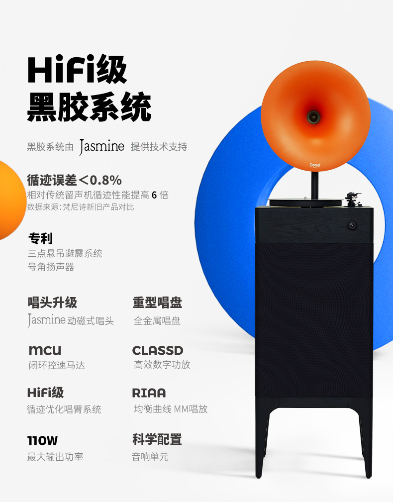 Fennessy/梵尼诗 Donut i5专业级黑胶唱片机 HiFi留声机蓝牙音响