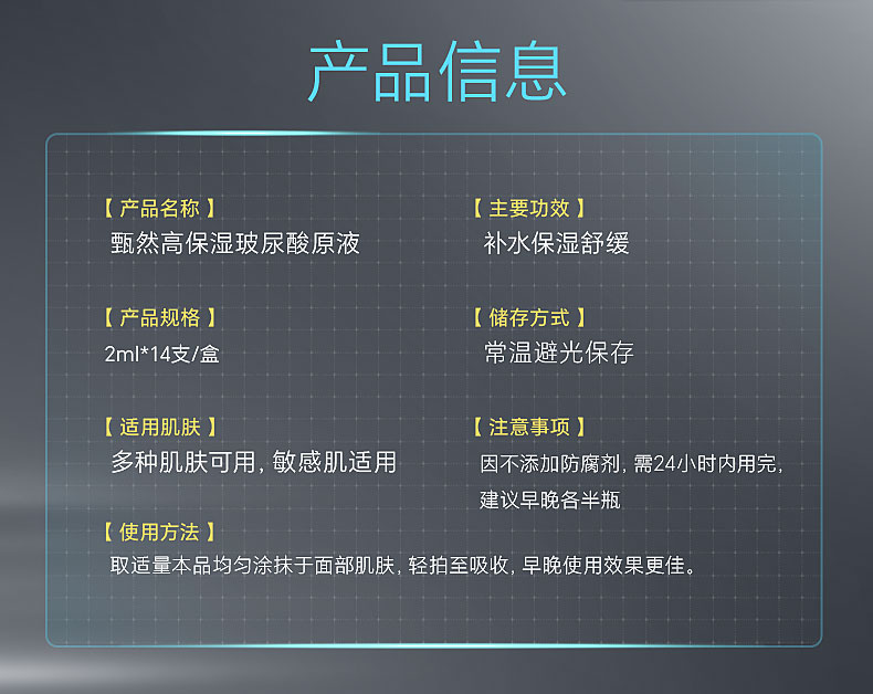 【玻尿酸原液精华】甄然高保湿玻尿酸原液舒缓补水安瓶次抛精华2ml/支