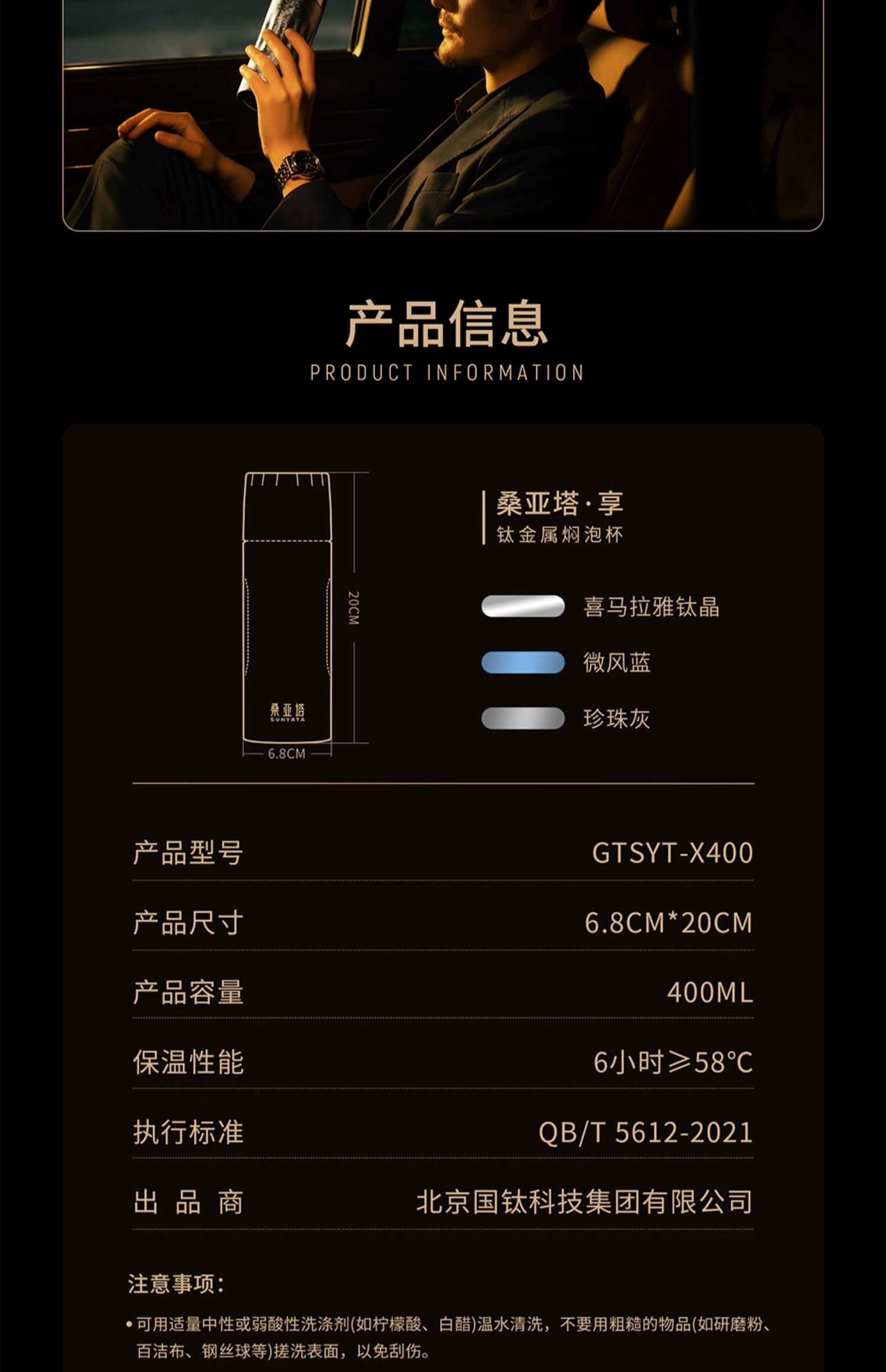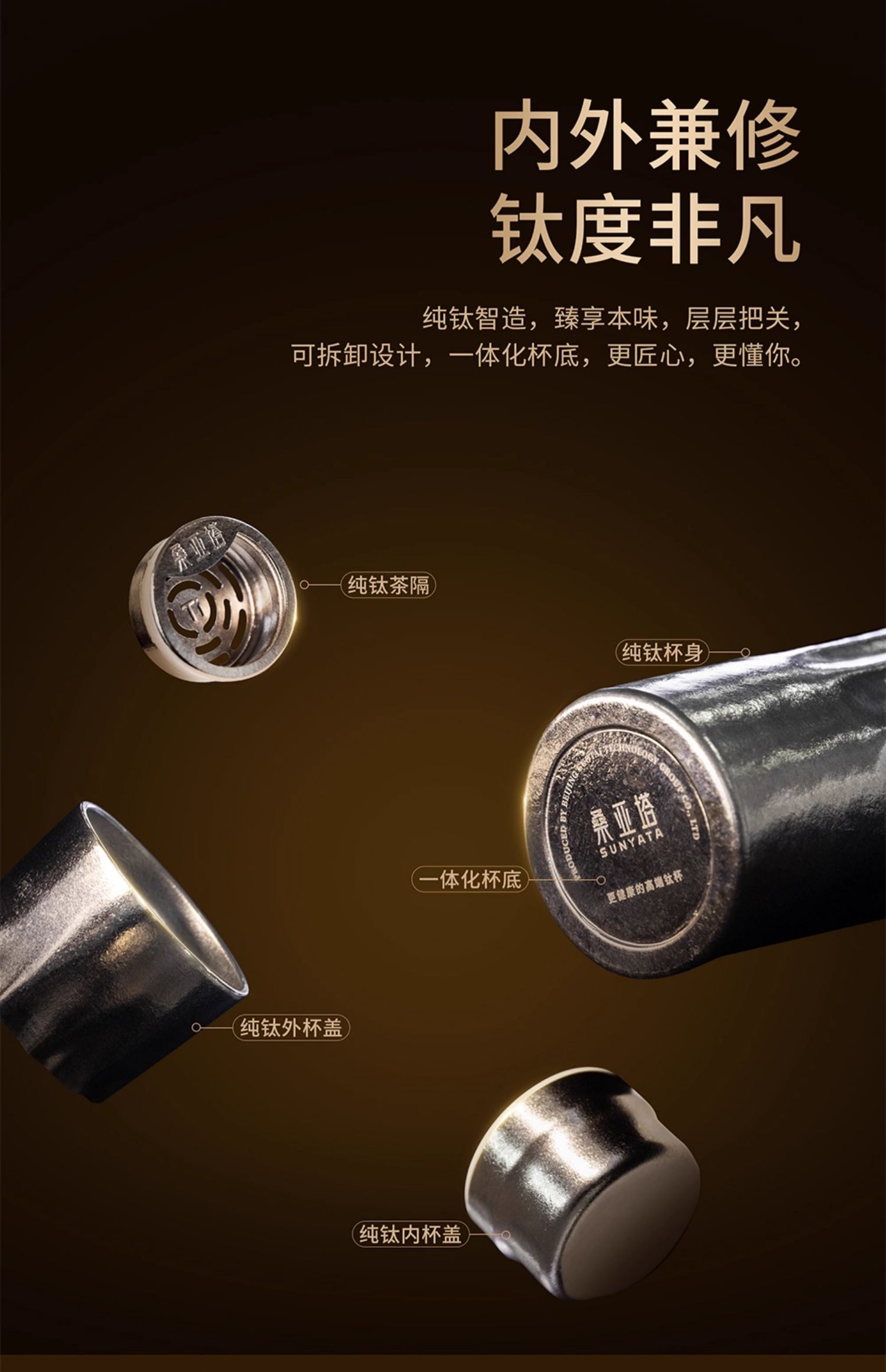 桑亚塔 高端钛杯·尊享钛金属焖泡杯双杯盖抑菌保温健康养生