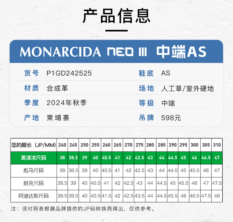 小李子Mizuno美津浓MONARCIDA NEO 3 中端AS碎钉成人比赛足球鞋男