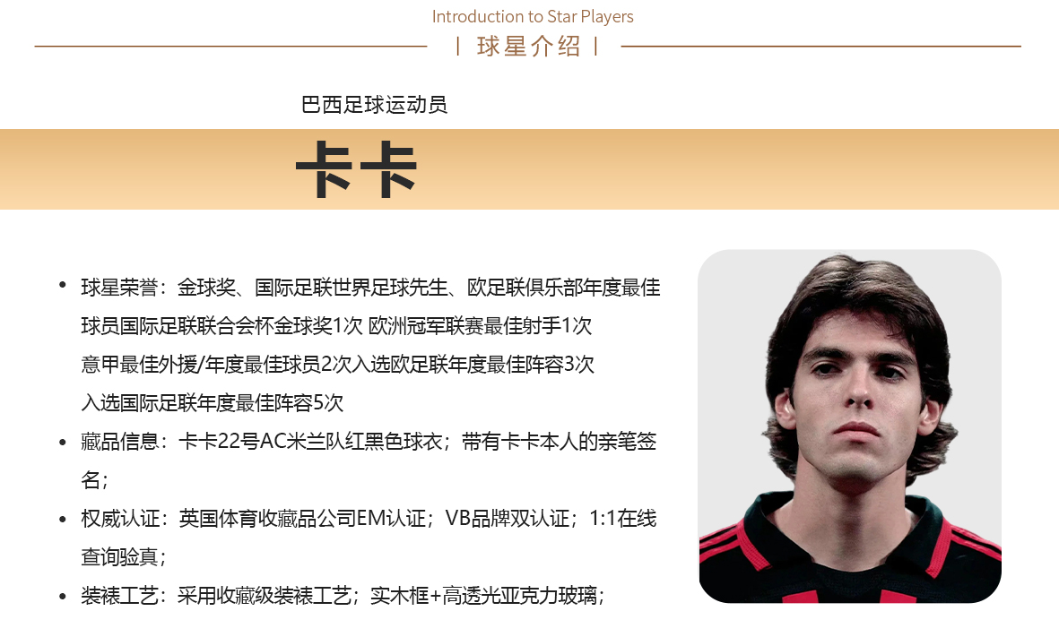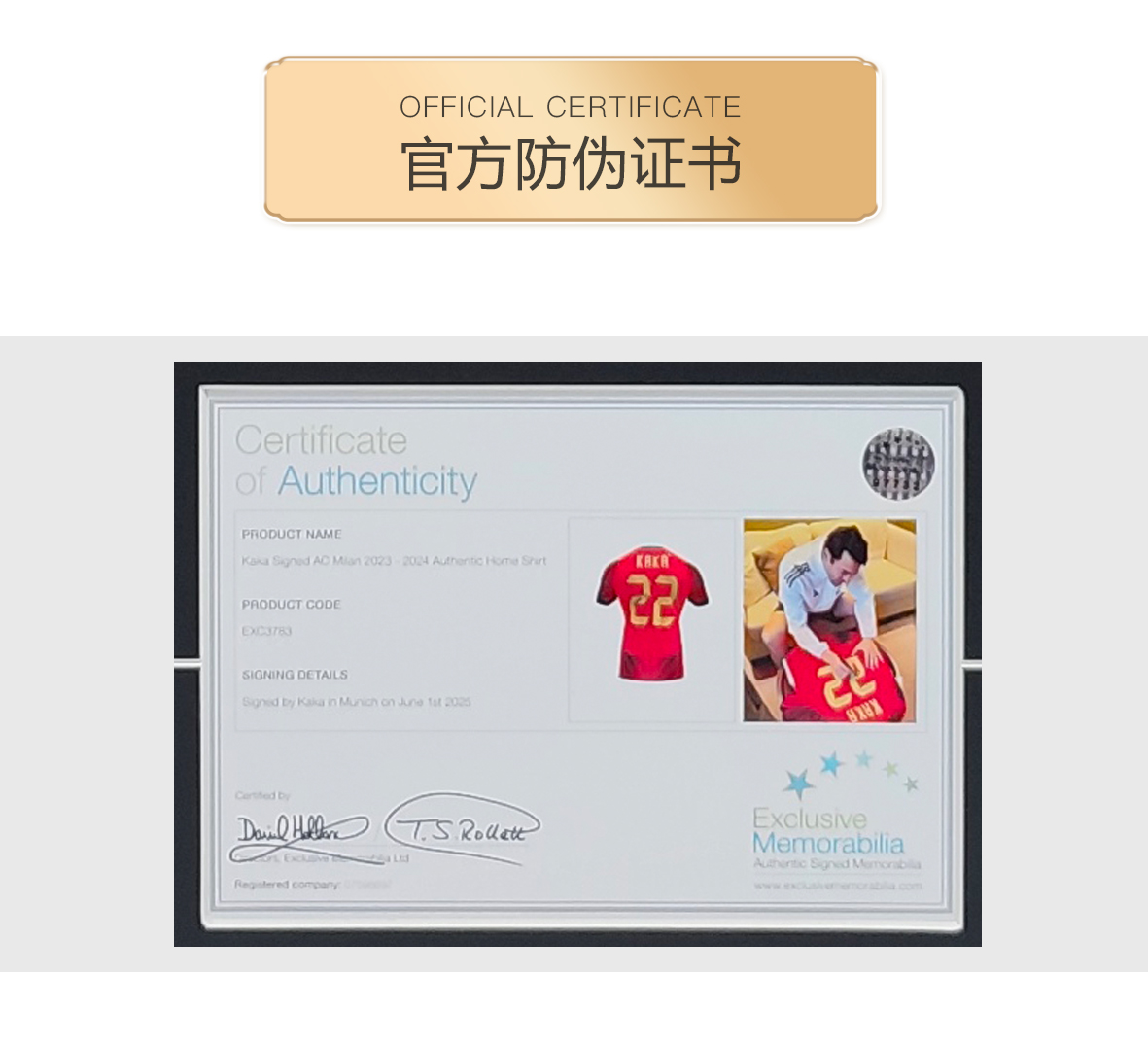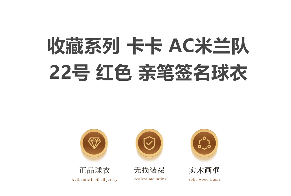 收藏系列 卡卡 AC米兰队22号红色 亲笔签名球衣