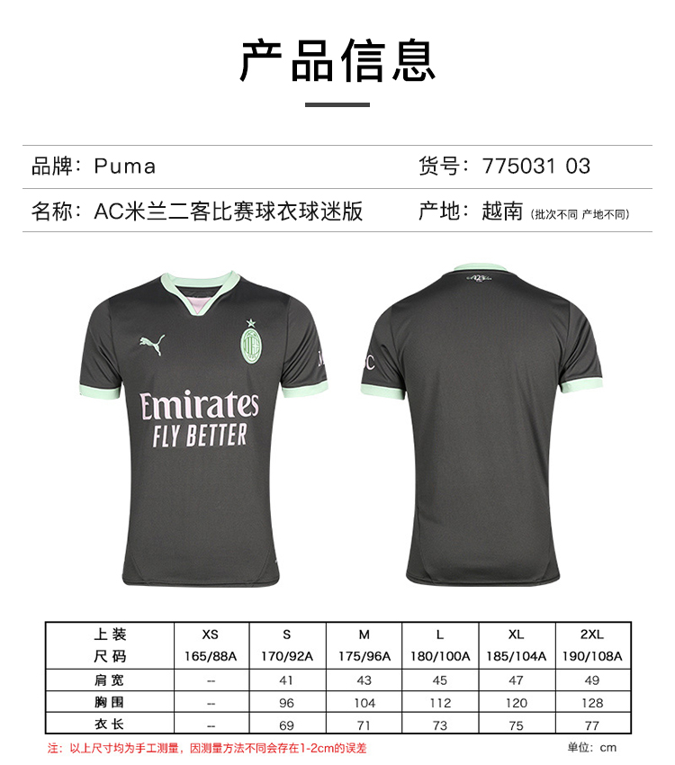 小李子PUMA彪马24-25赛季AC米兰第二客场球迷版球衣成人775031 03