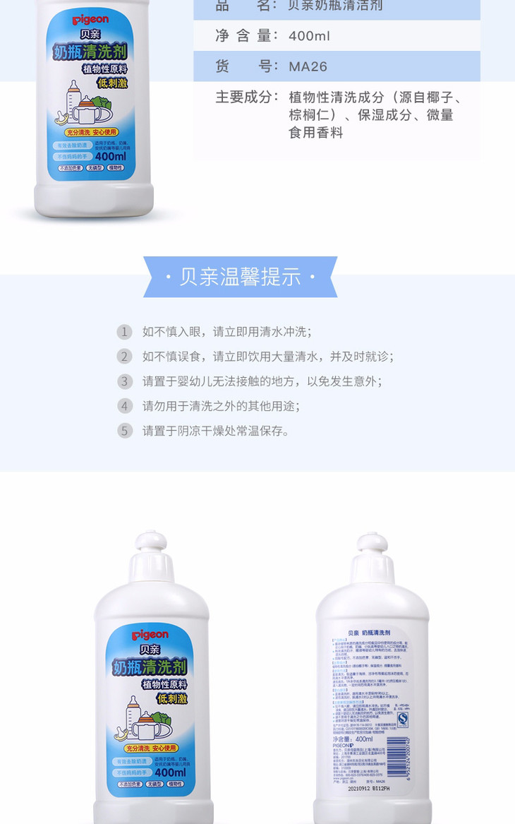 贝亲奶瓶清洁剂400ml瓶装_MA26