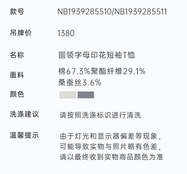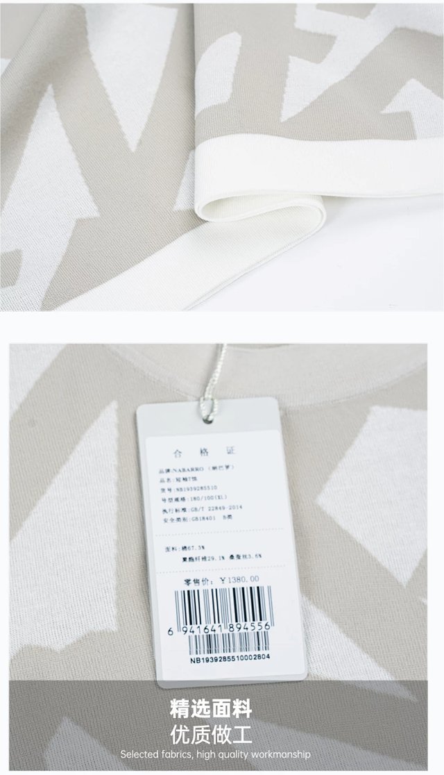 纳巴罗圆领棉丝可水洗字母印花短袖T恤NB1939285510 / NB1939285511