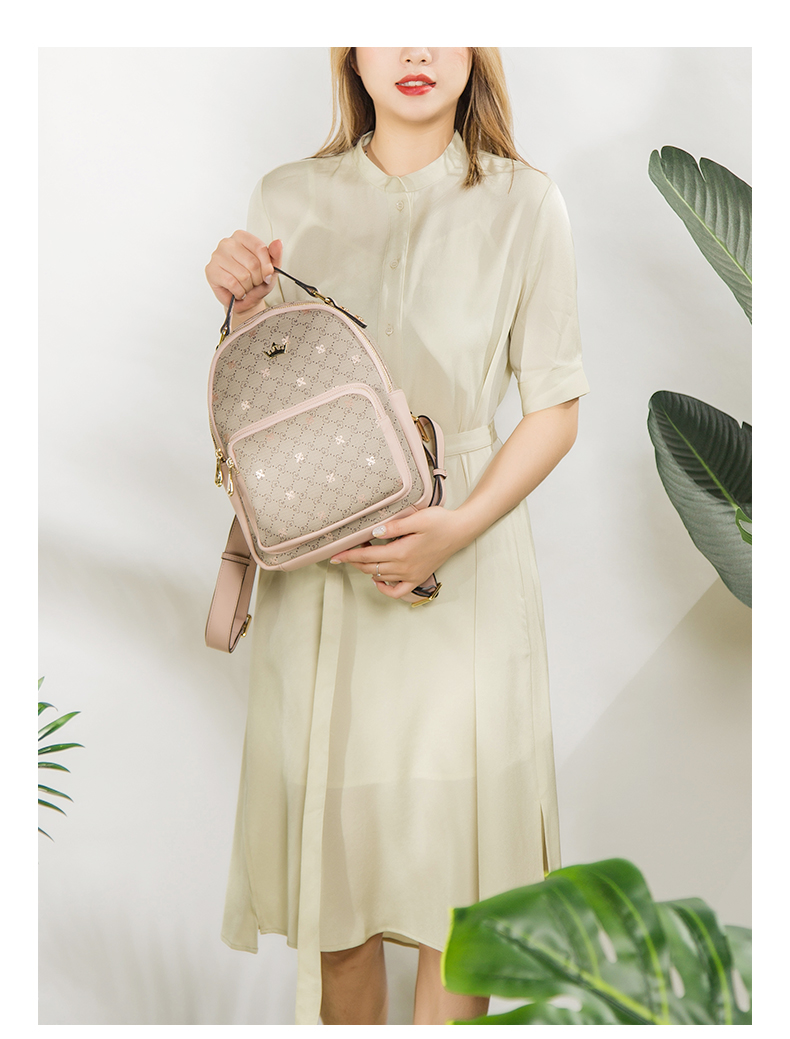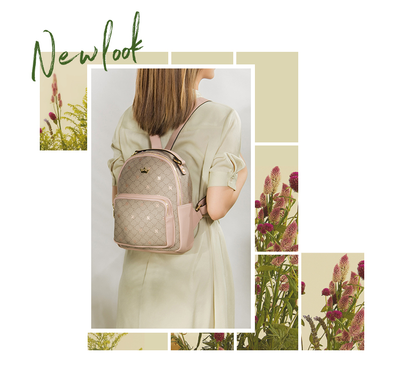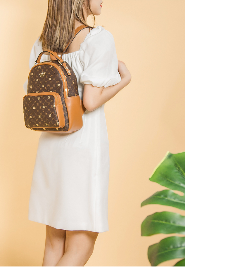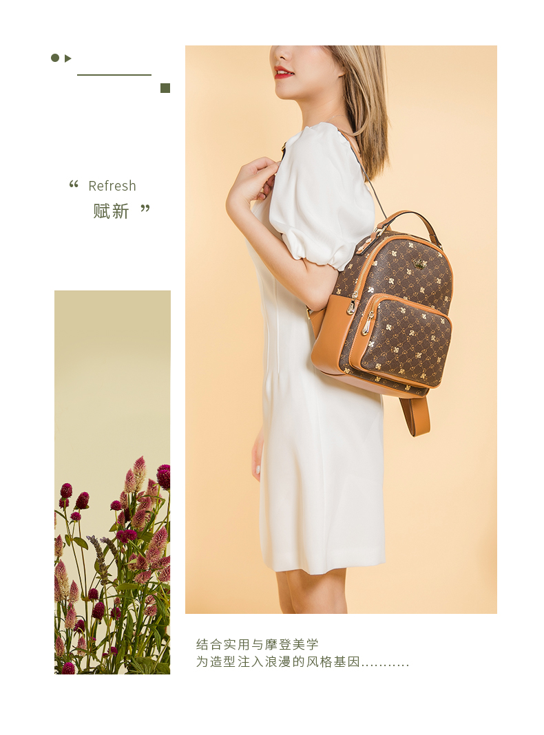 梦特娇2020秋冬静谧宫廷鸢尾花啡棕色女士双肩包