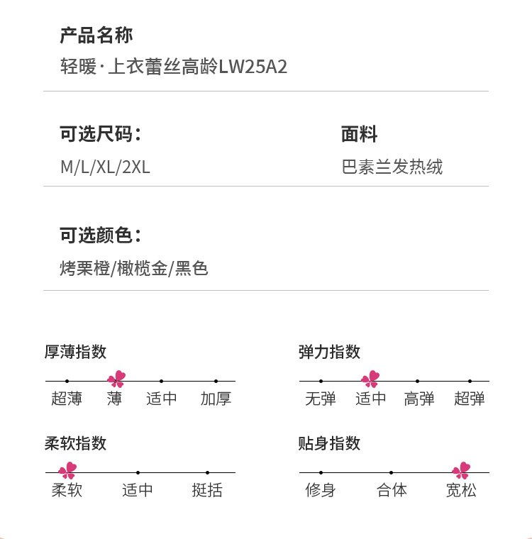 都市丽人轻暖5至15度女士发热纤维单件巴素兰发热绒薄单件上衣保暖衣LW25A2