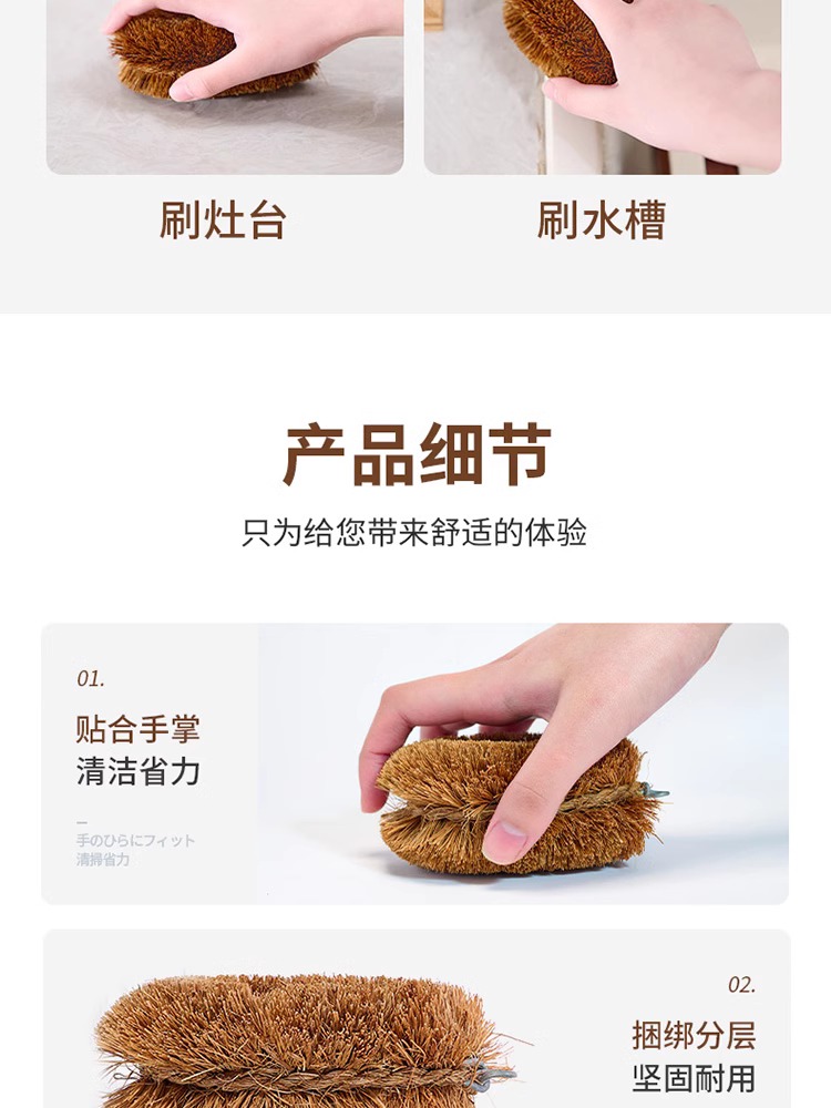 吉酷隆纯天然椰棕菜板锅刷大号