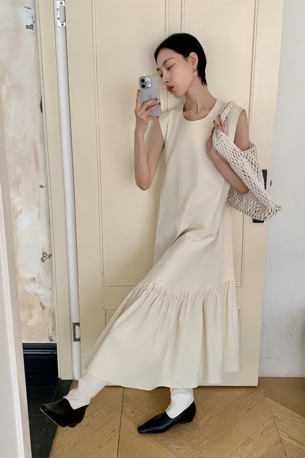 Kai & Kiera 极简无袖A字宽松大摆气质连衣裙 22049
