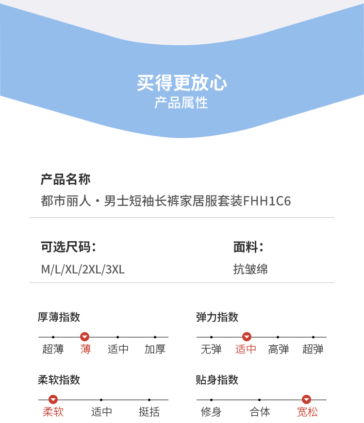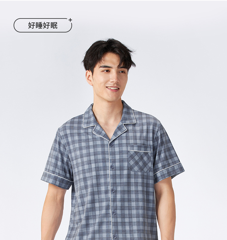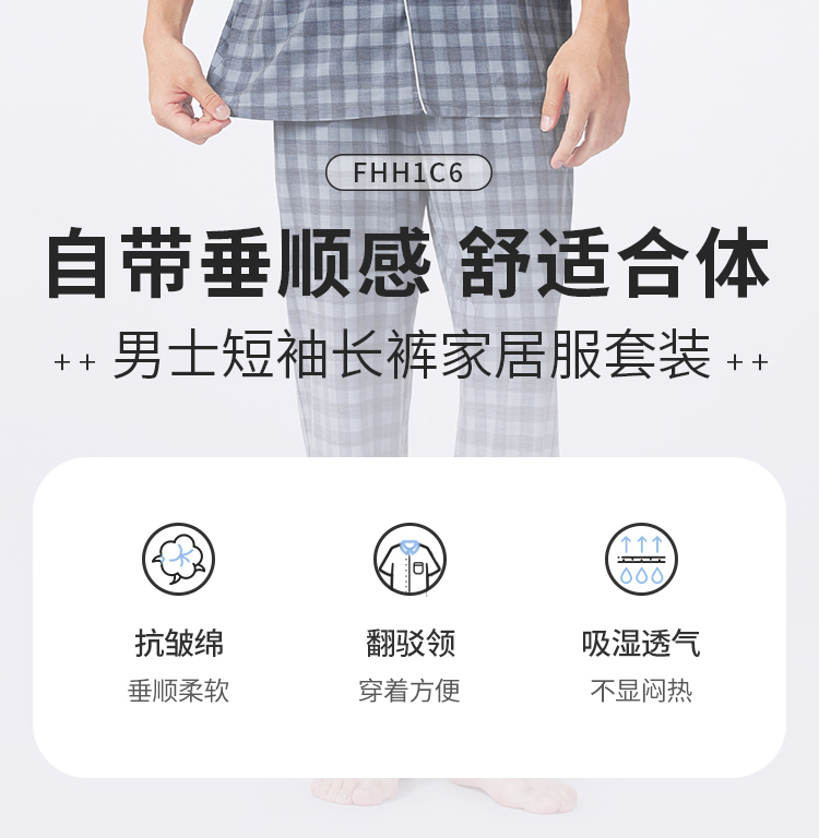 都市丽人男士棉质短袖套装薄抗皱绵生活家居短袖类FHH1C6