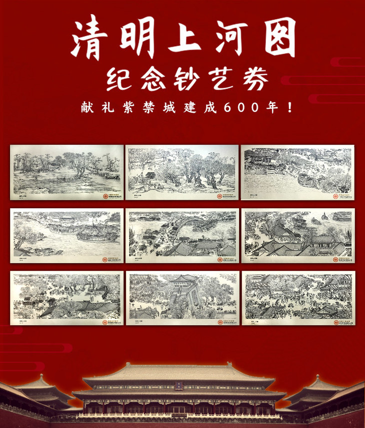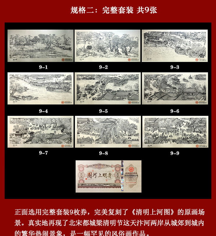 《清明上河图》纪念钞艺券 完整套装(共9张)
