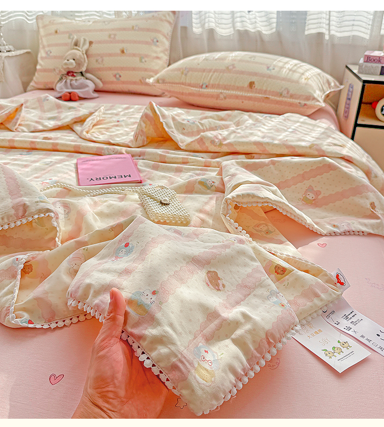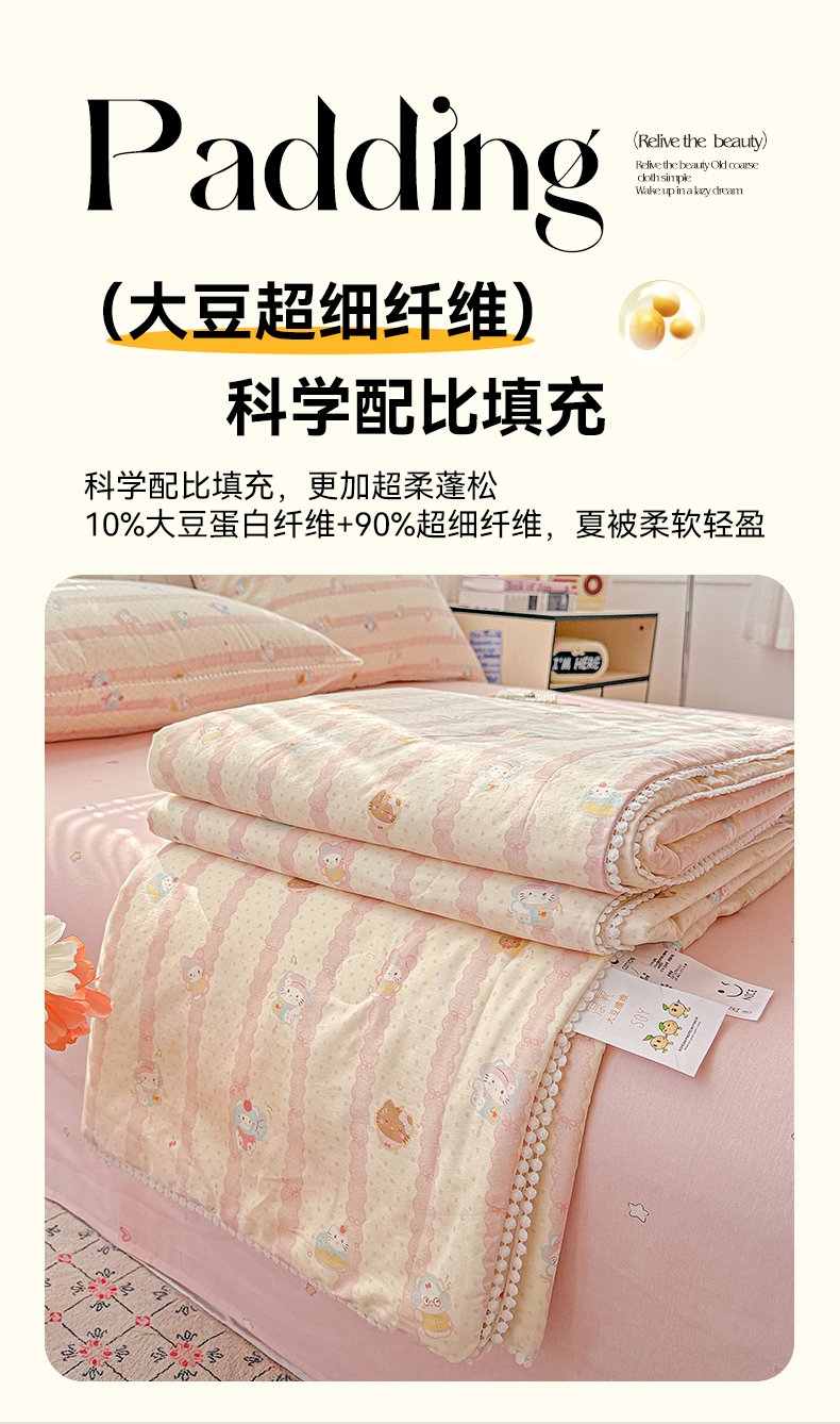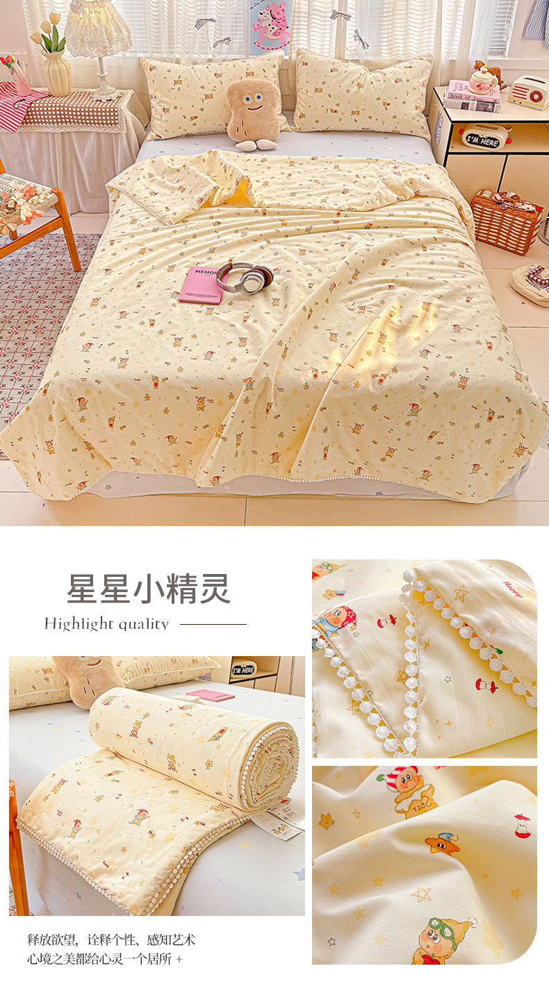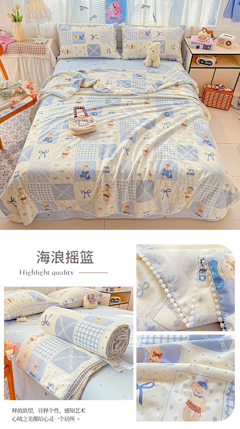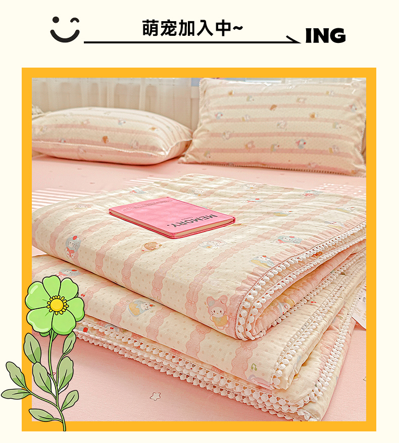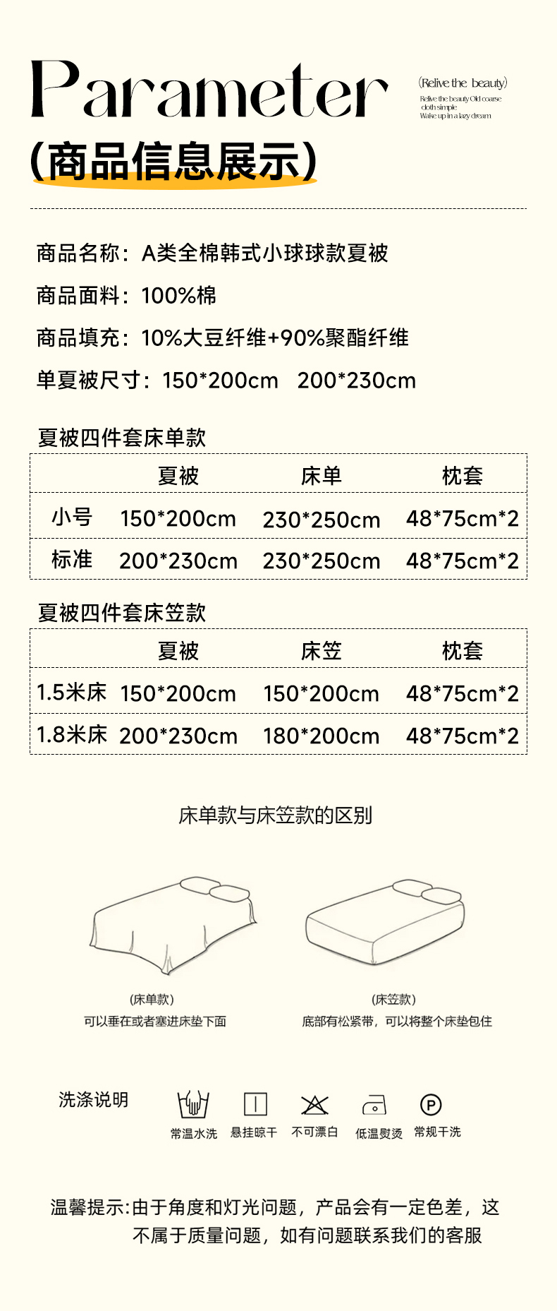 【春夏上新】自然醒A类全棉韩式小球球款大豆夏被四件套YBY