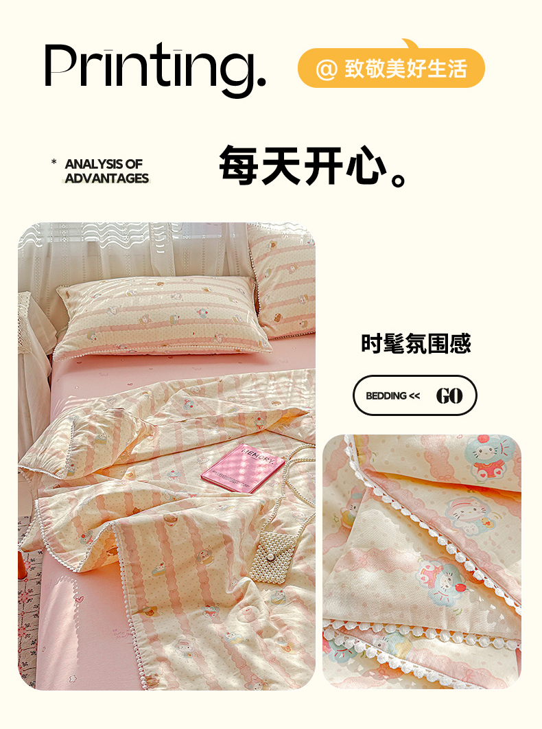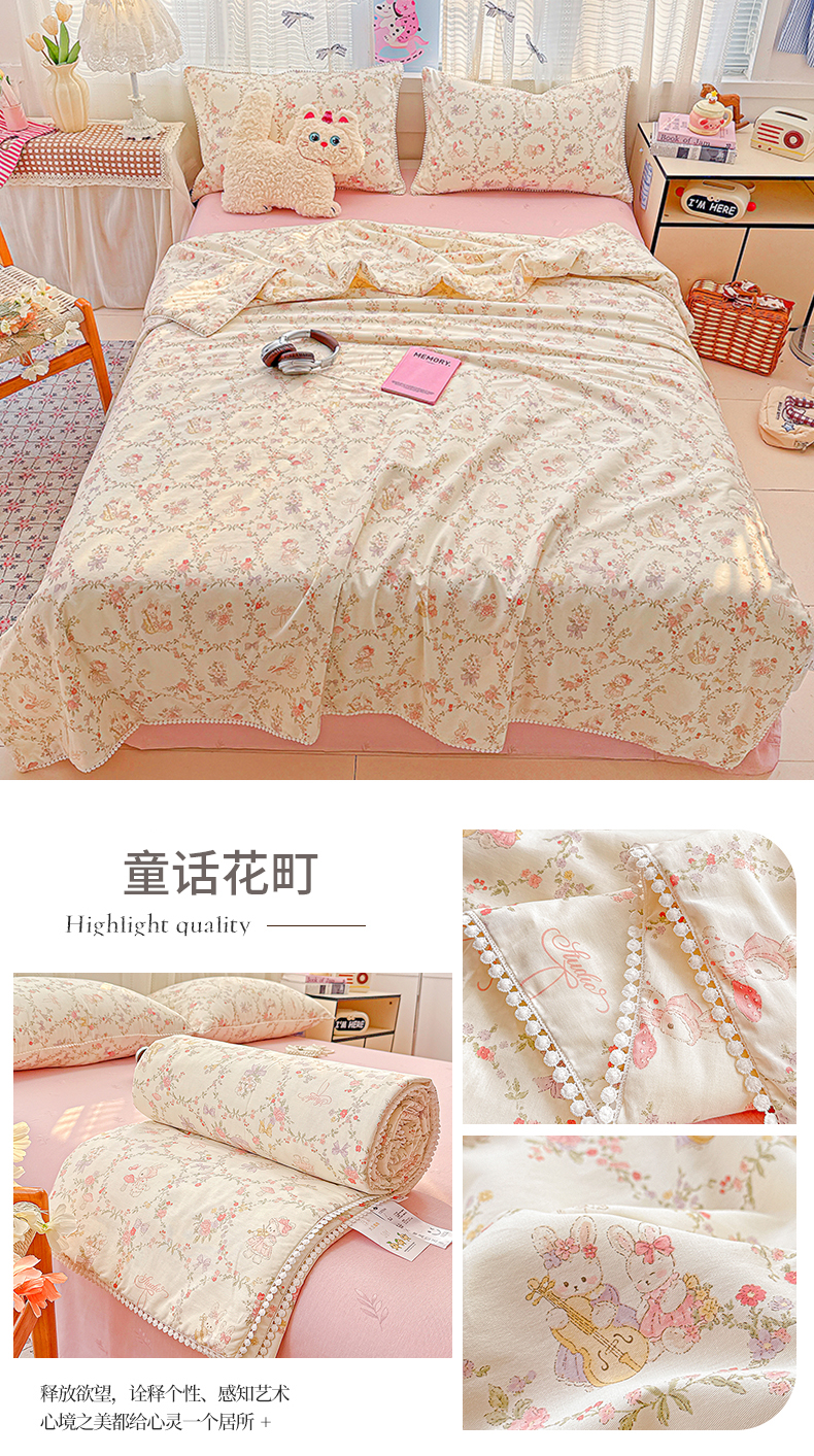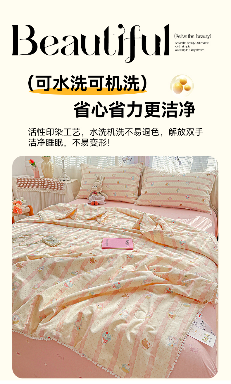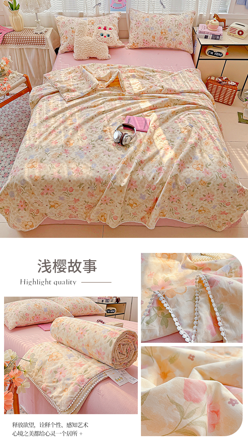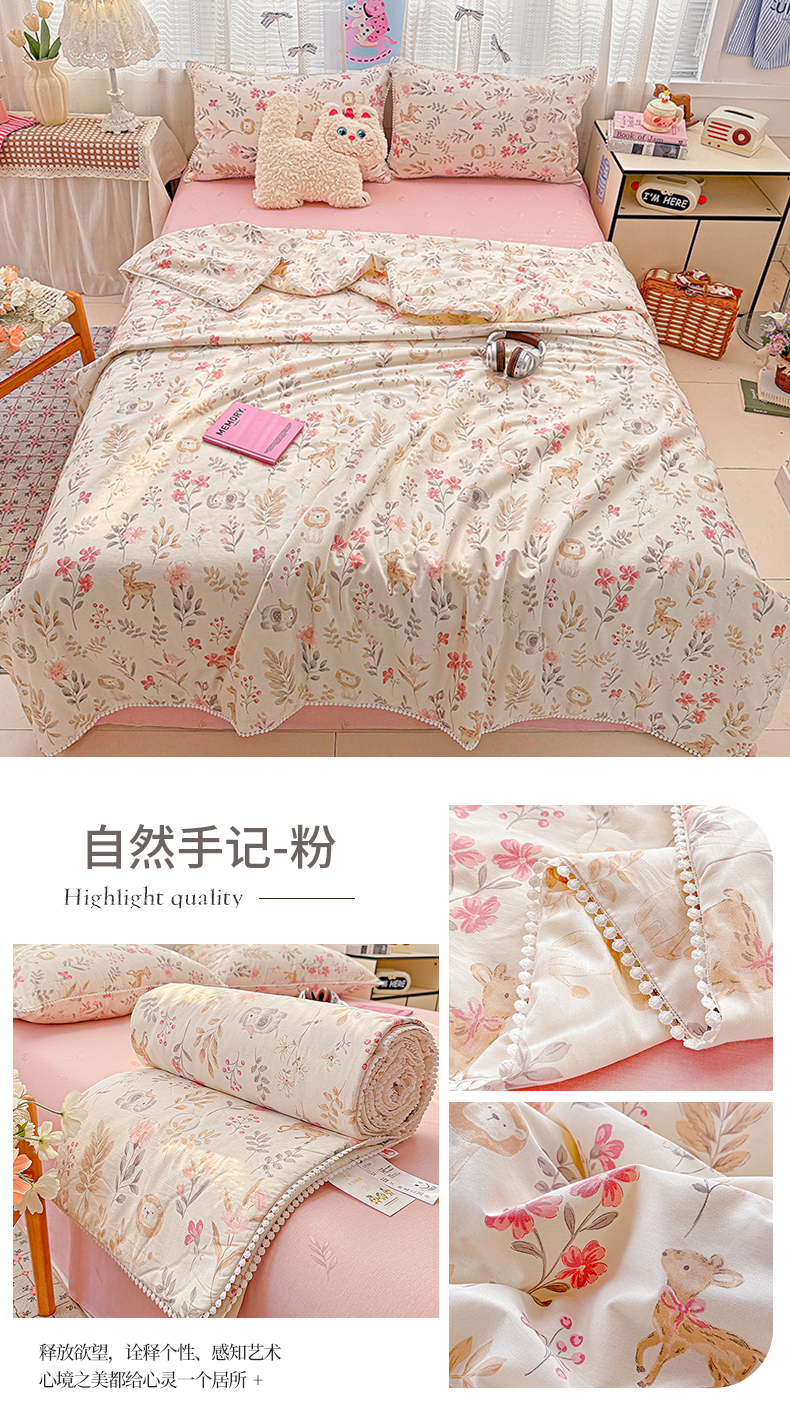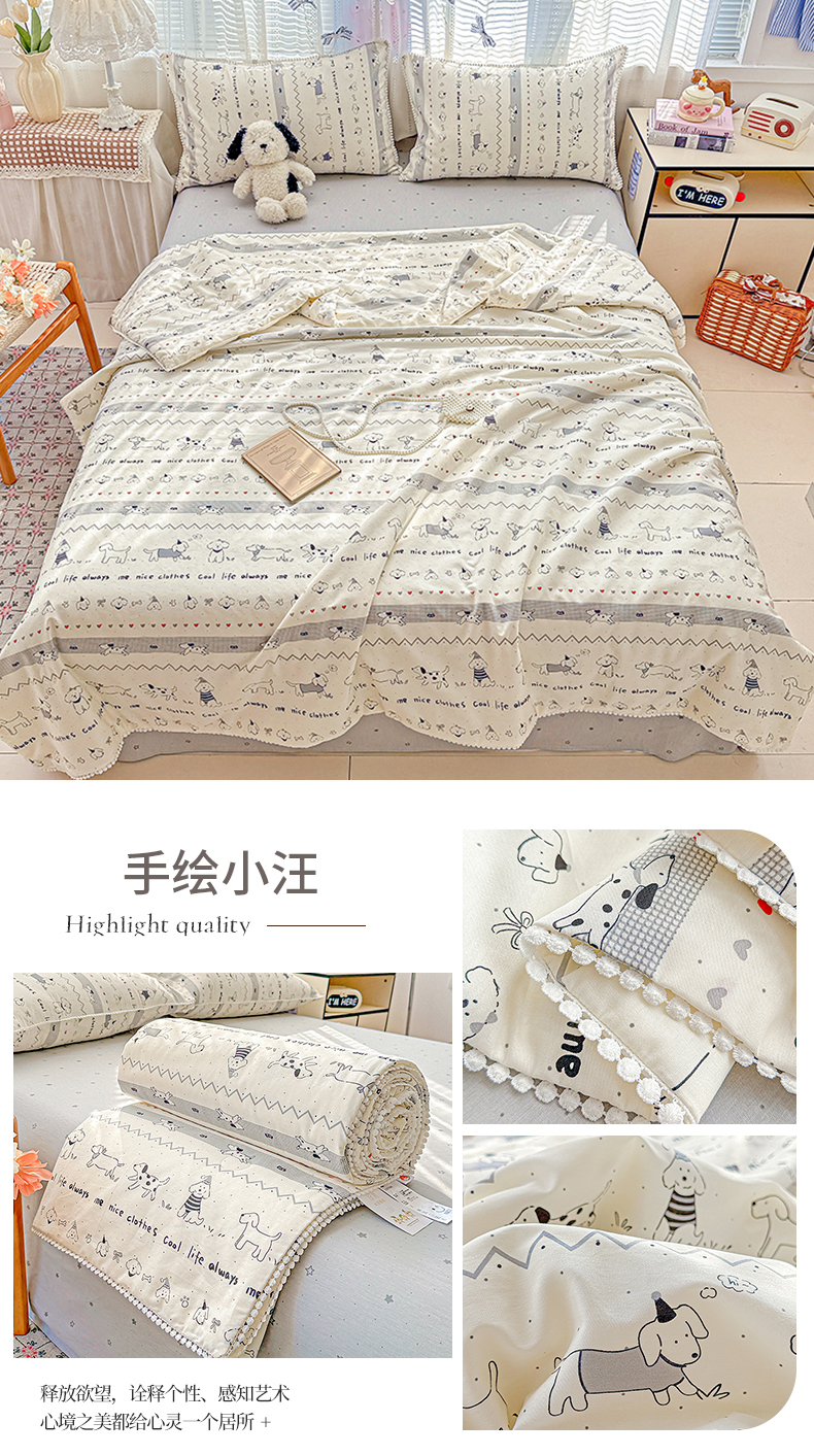 【春夏上新】自然醒A类全棉韩式小球球款大豆夏被四件套YBY