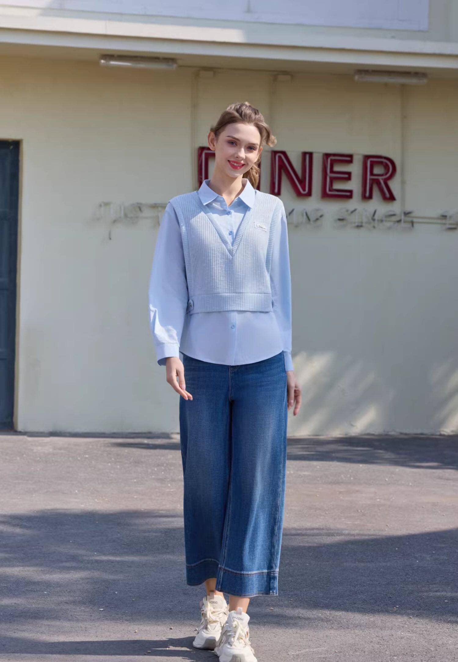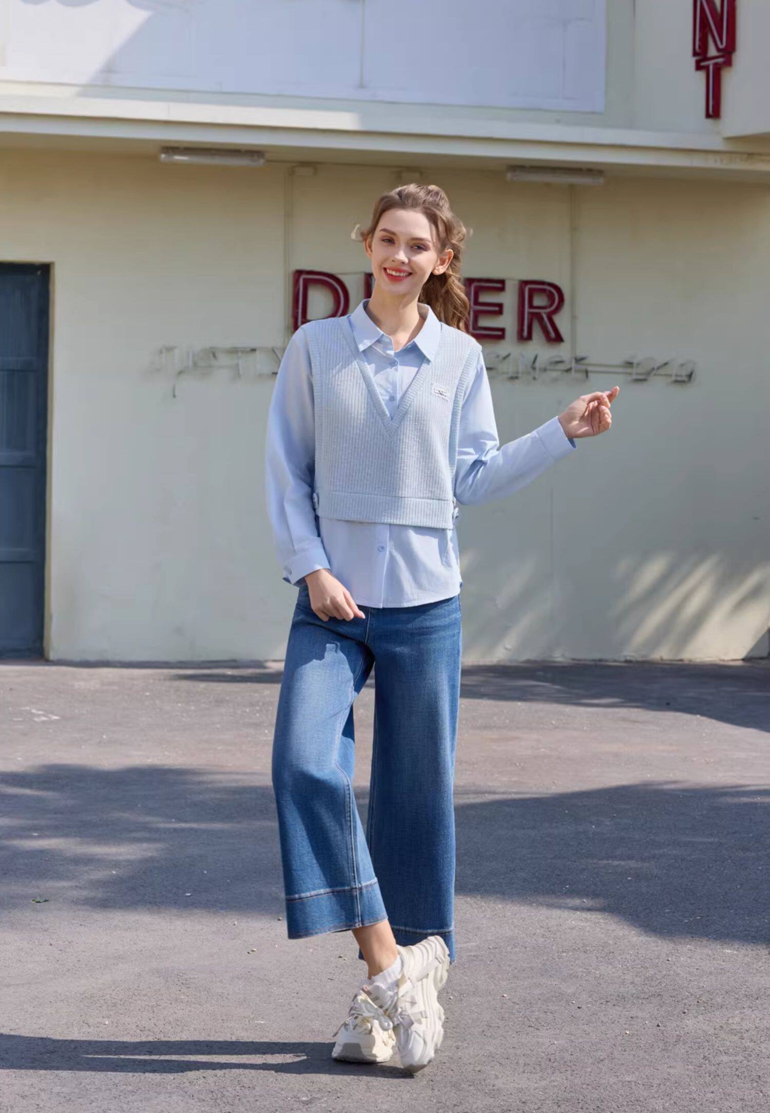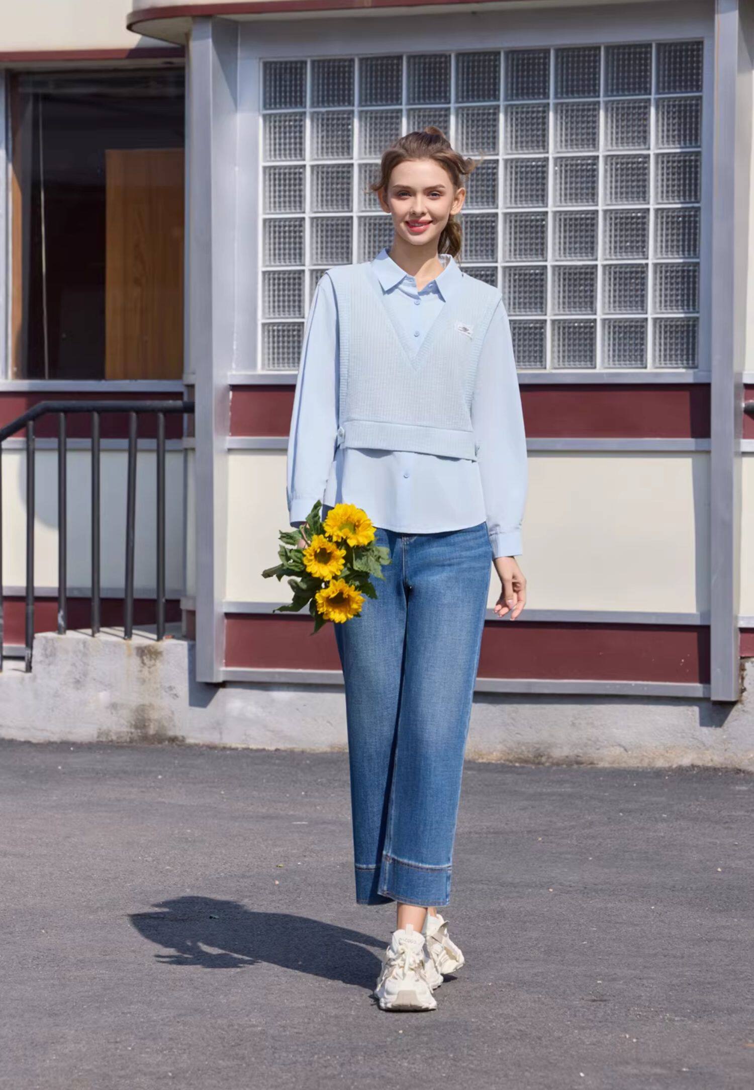 半身缘女裤 春季时尚复古中性蓝法棍牛仔裤261202U30120159