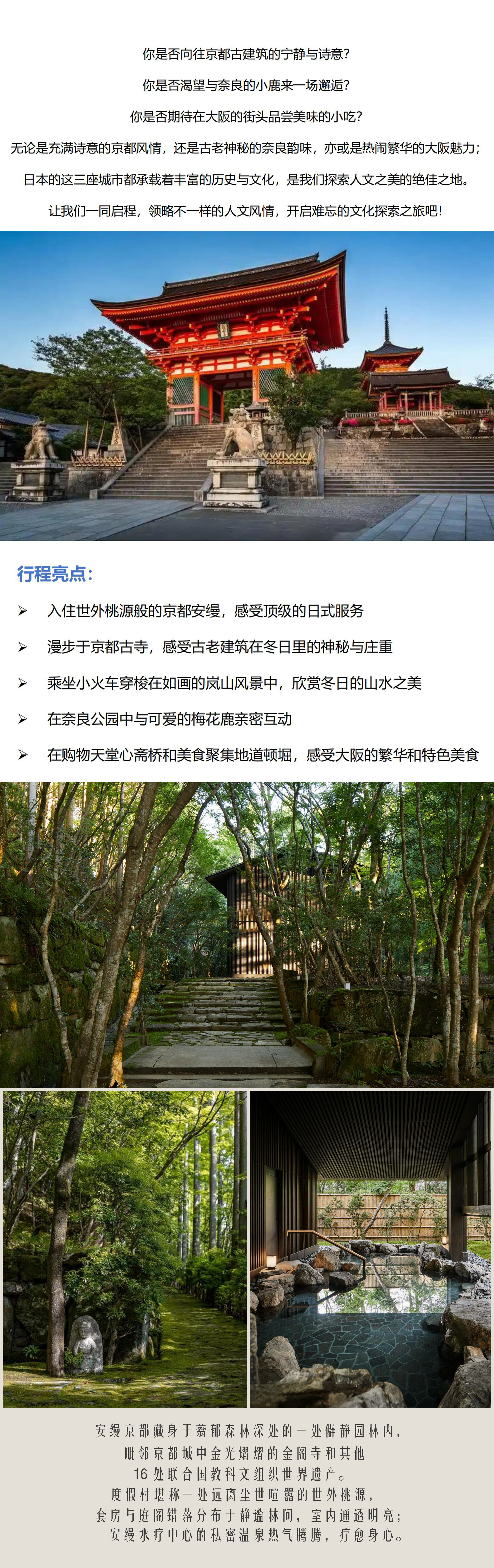 2.【可选】套餐2:D1 京都安缦 1晚,D2 京:5星 1晚,D3-D4 大阪5星 2晚,含早 2人一间;