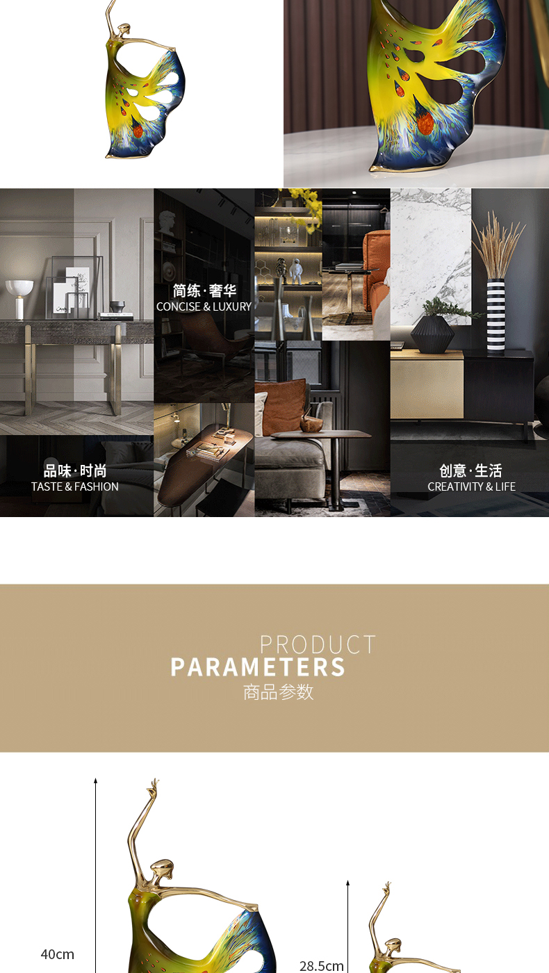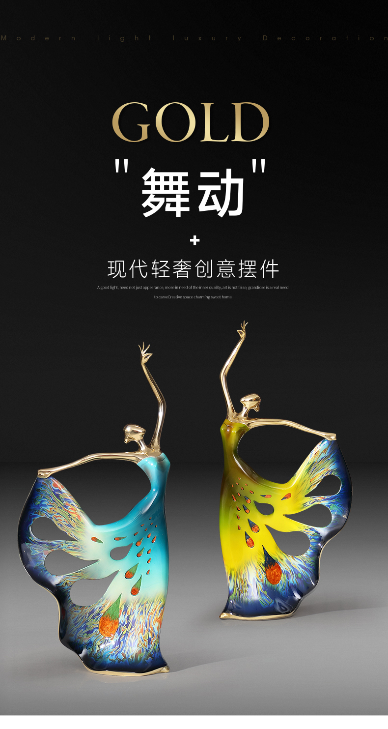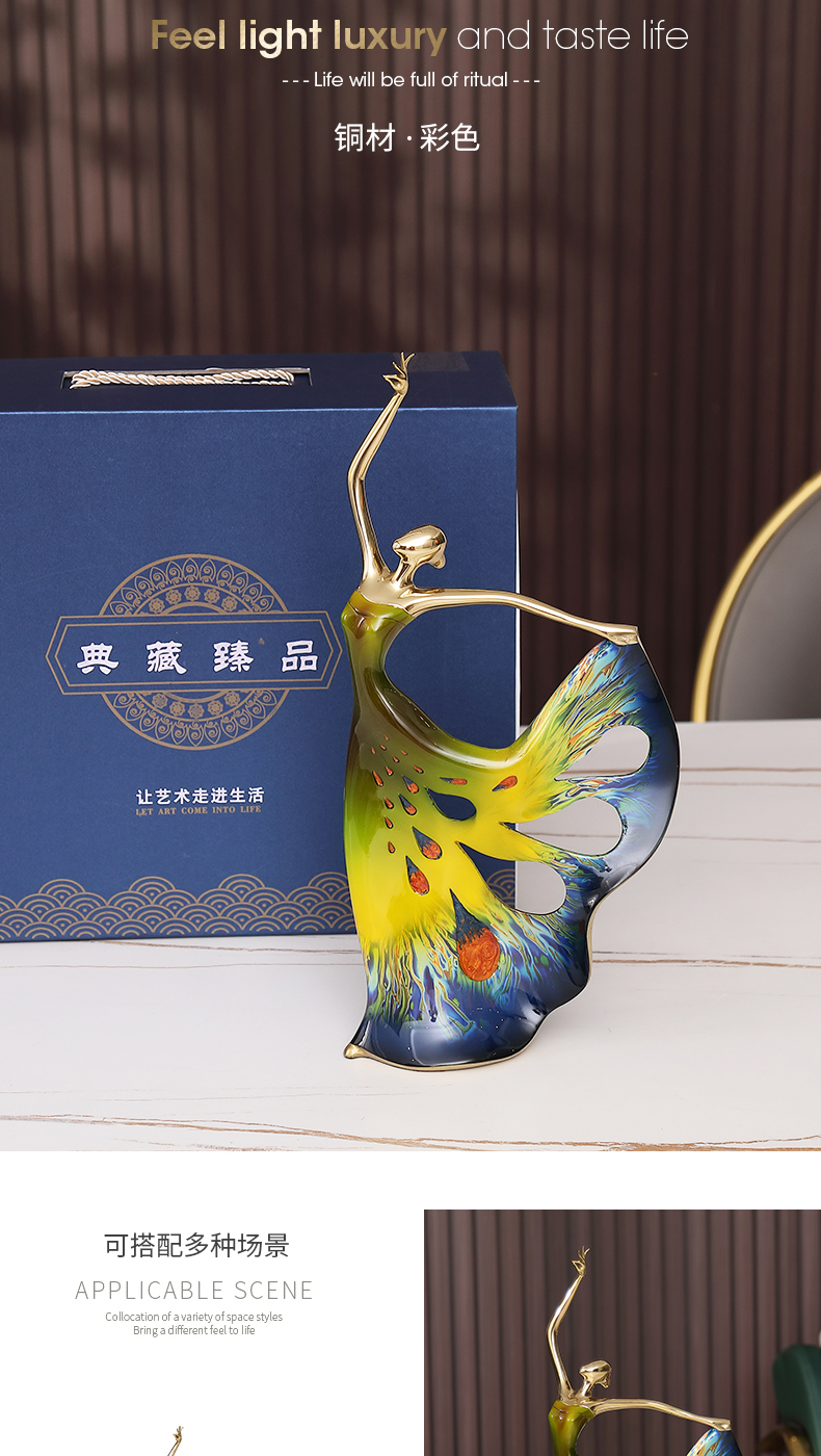 E-YM-B172 彩铜大漆工艺摆件 美女 渐变绿