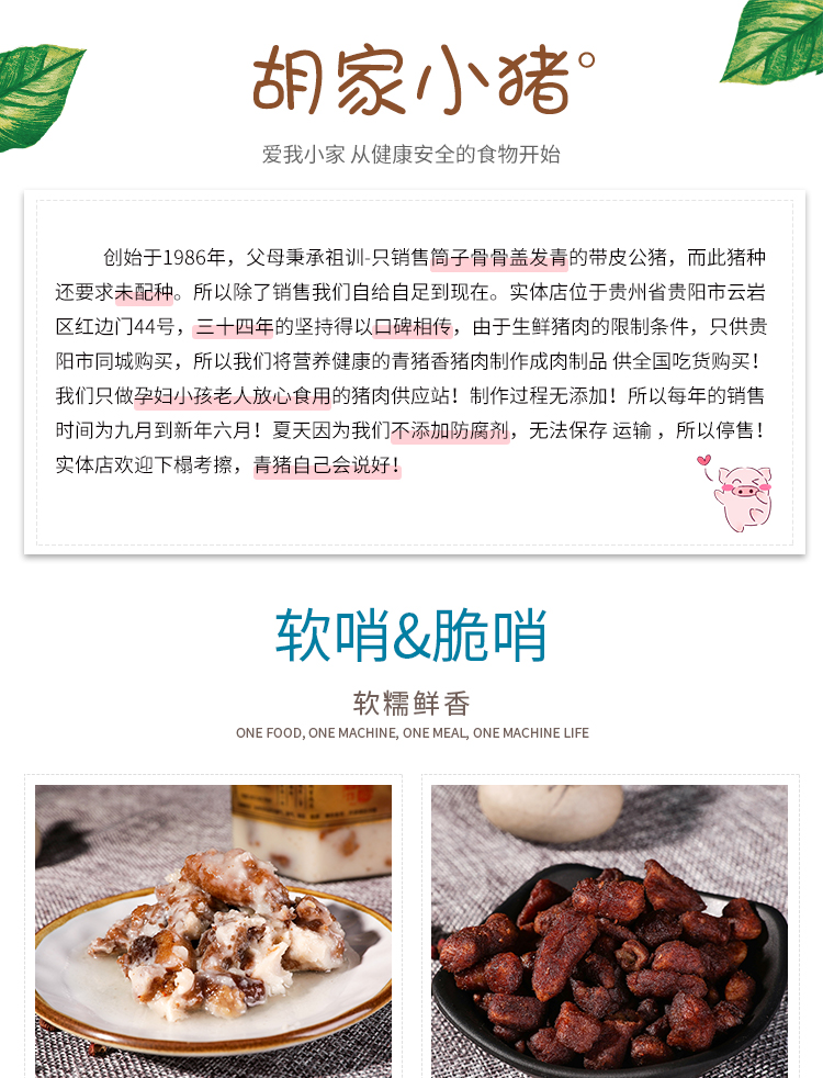 【胡家小猪】手工贵州特产猪肉软哨子猪油无食品添加剂包邮