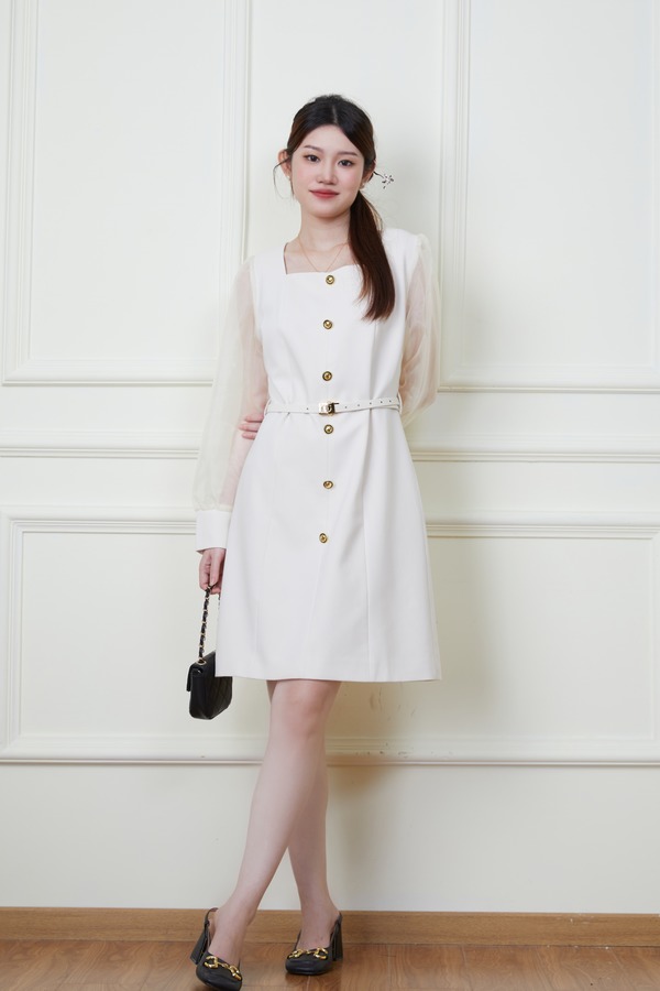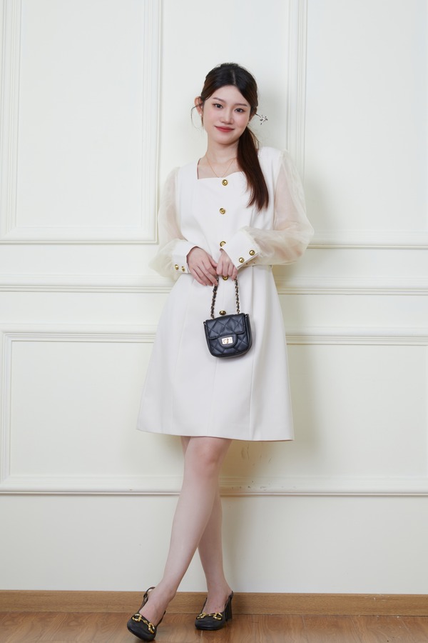 Le Malene 高级感白色拼接式西装连衣裙 19882