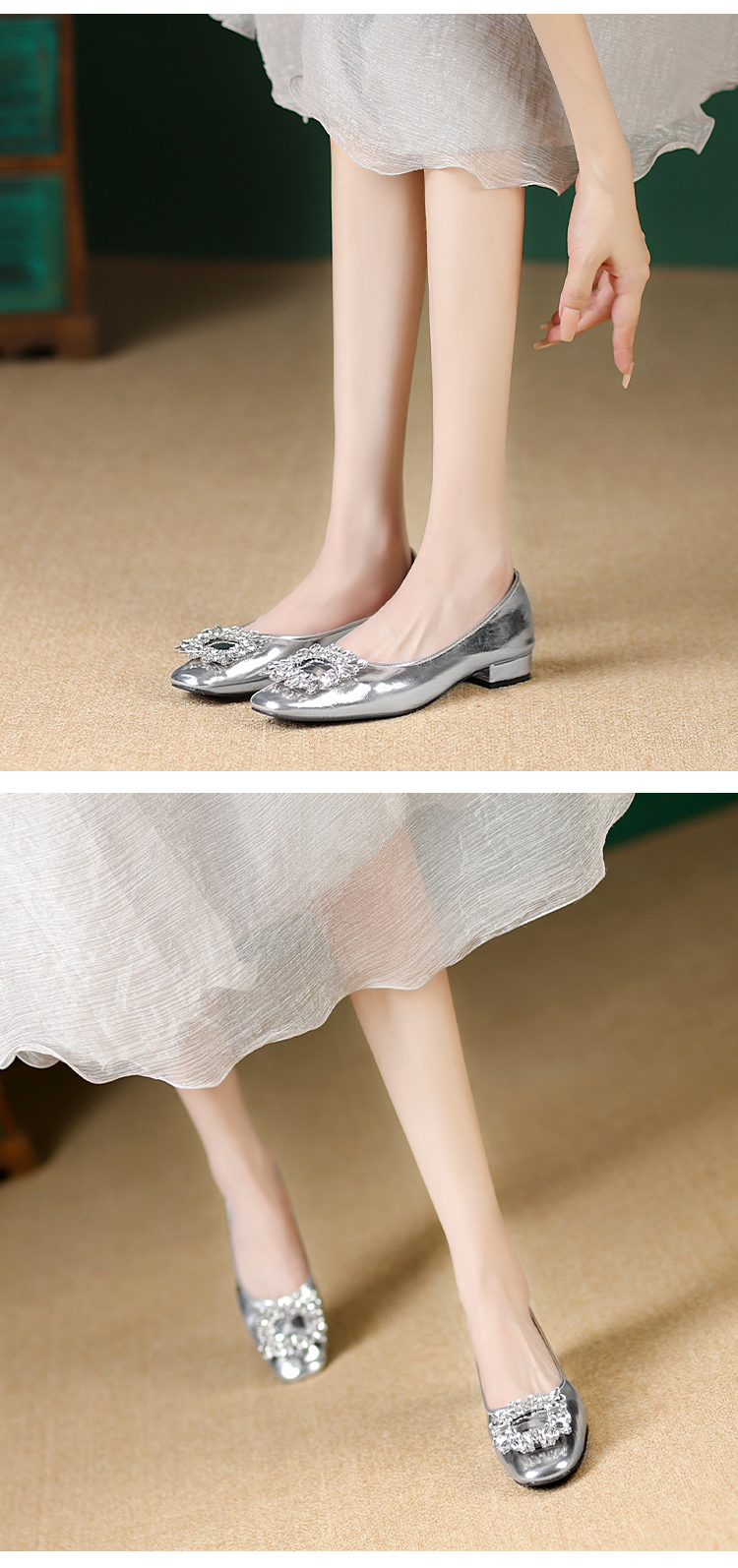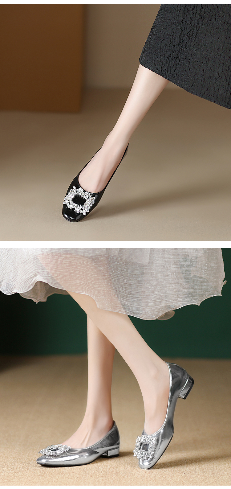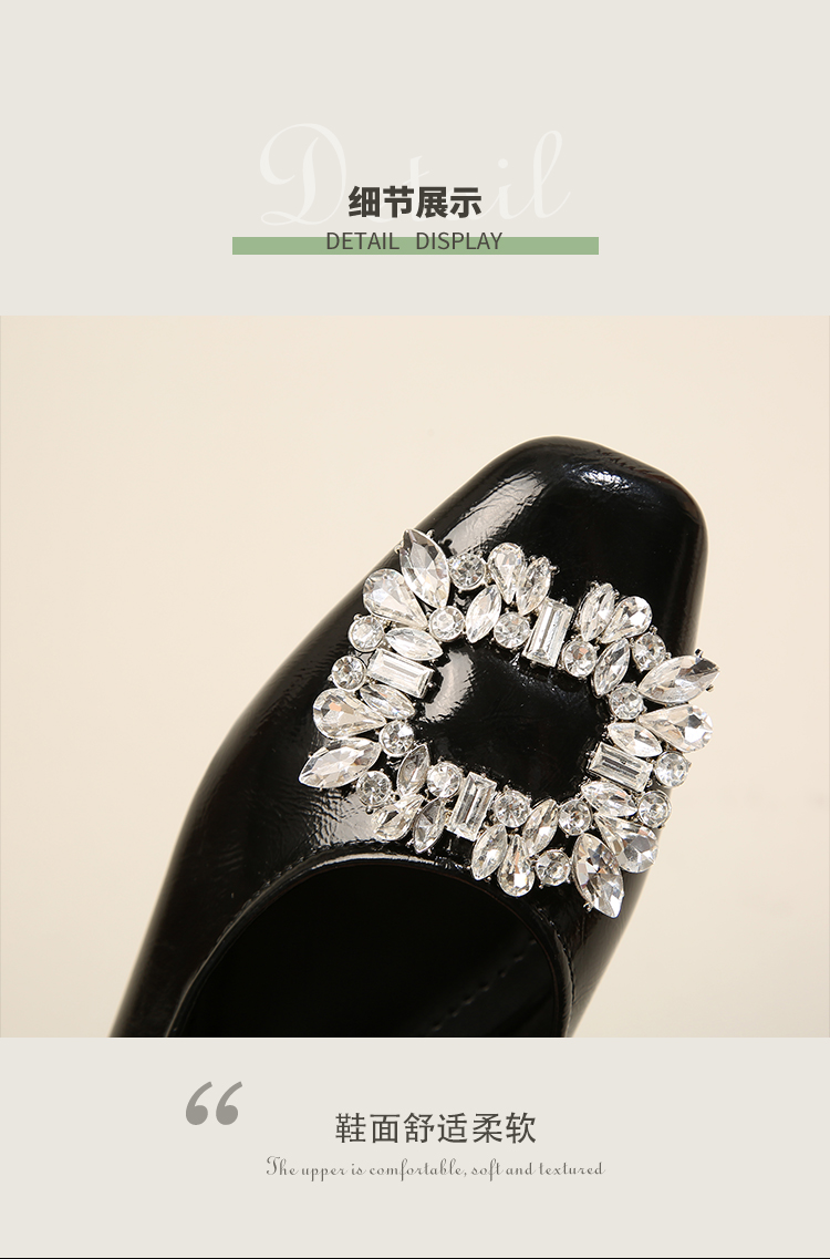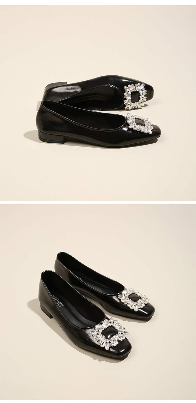 西遇低跟法式单鞋新款早春气质通勤百搭女鞋方钻银色浅口船鞋V0047338