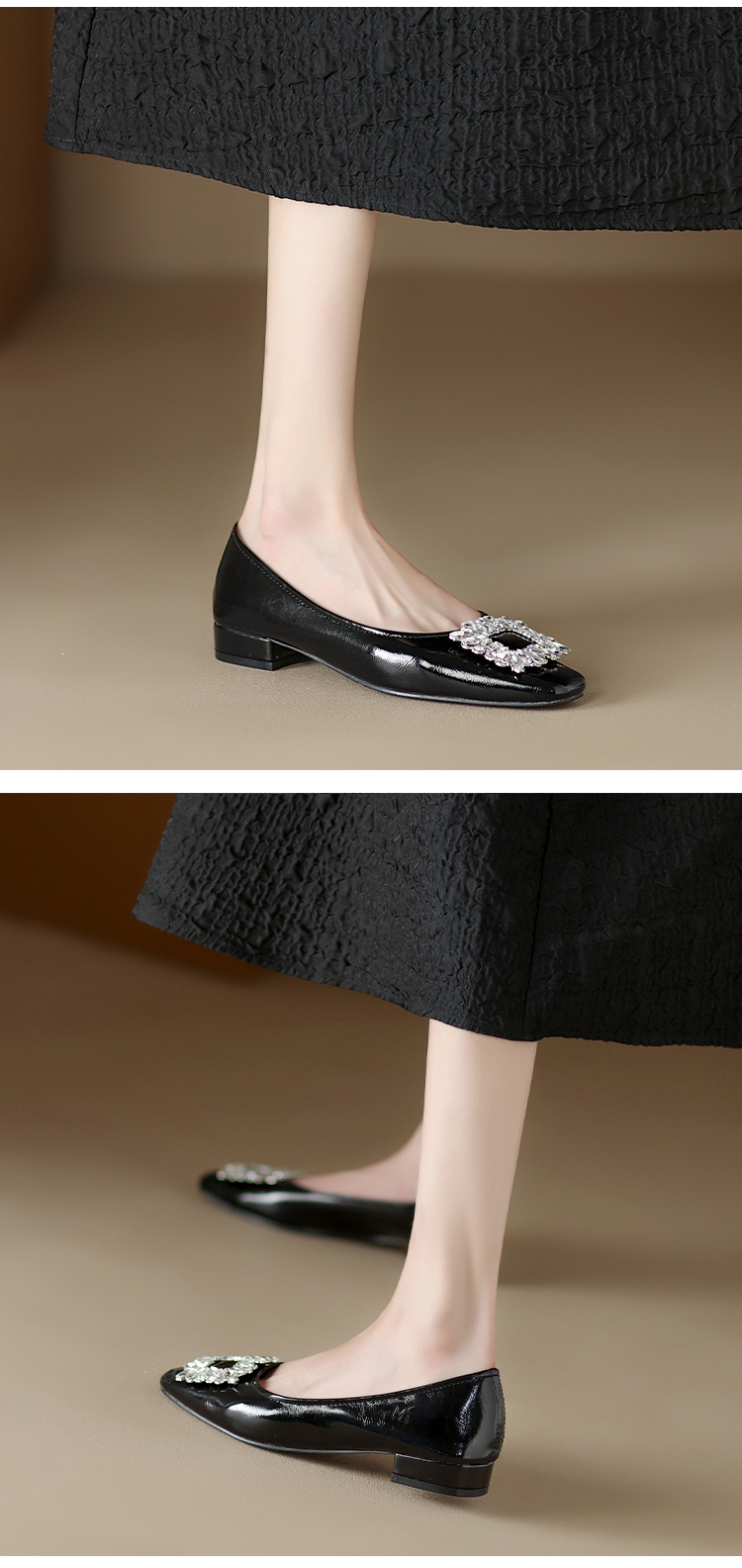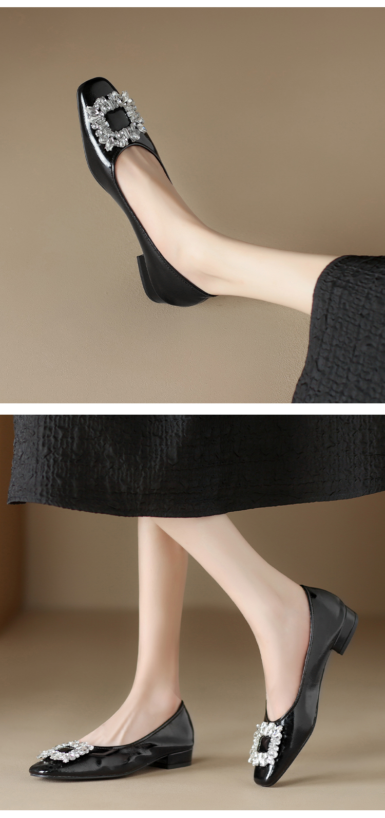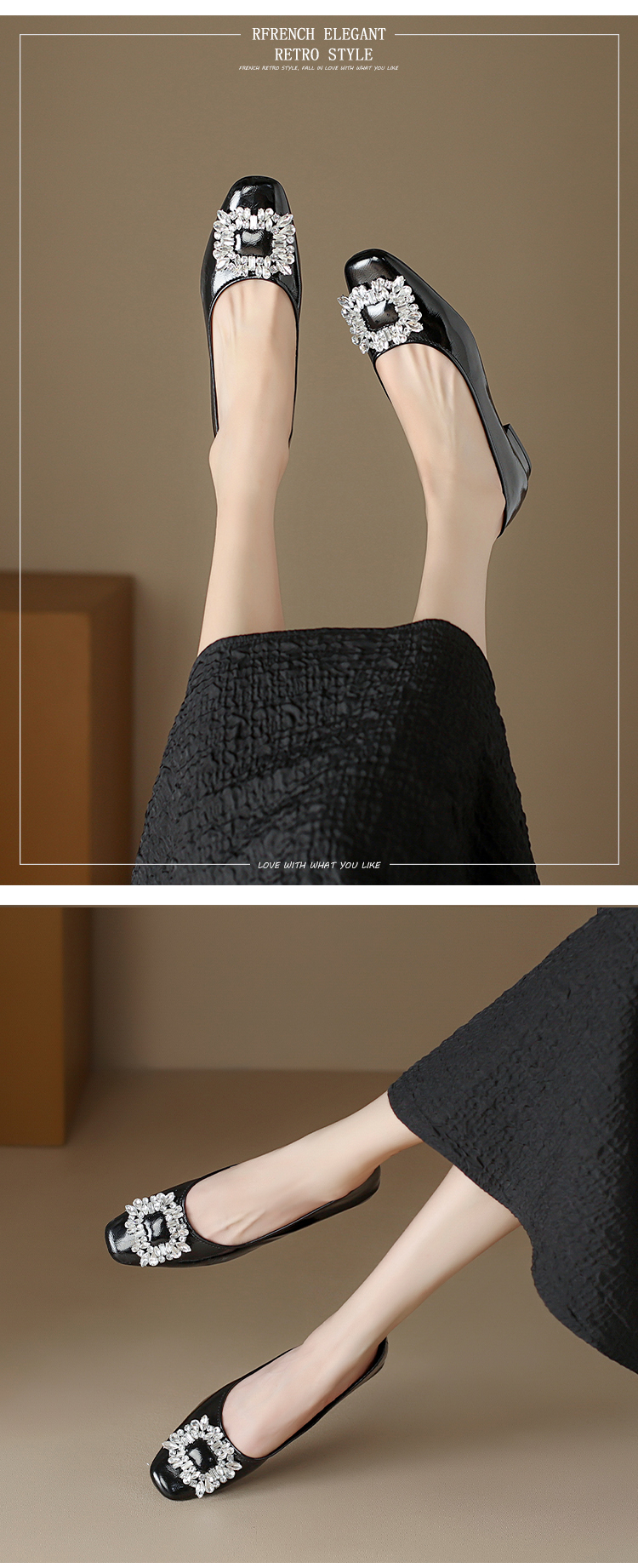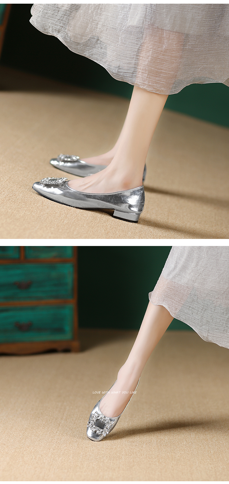 西遇低跟法式单鞋新款早春气质通勤百搭女鞋方钻银色浅口船鞋V0047338