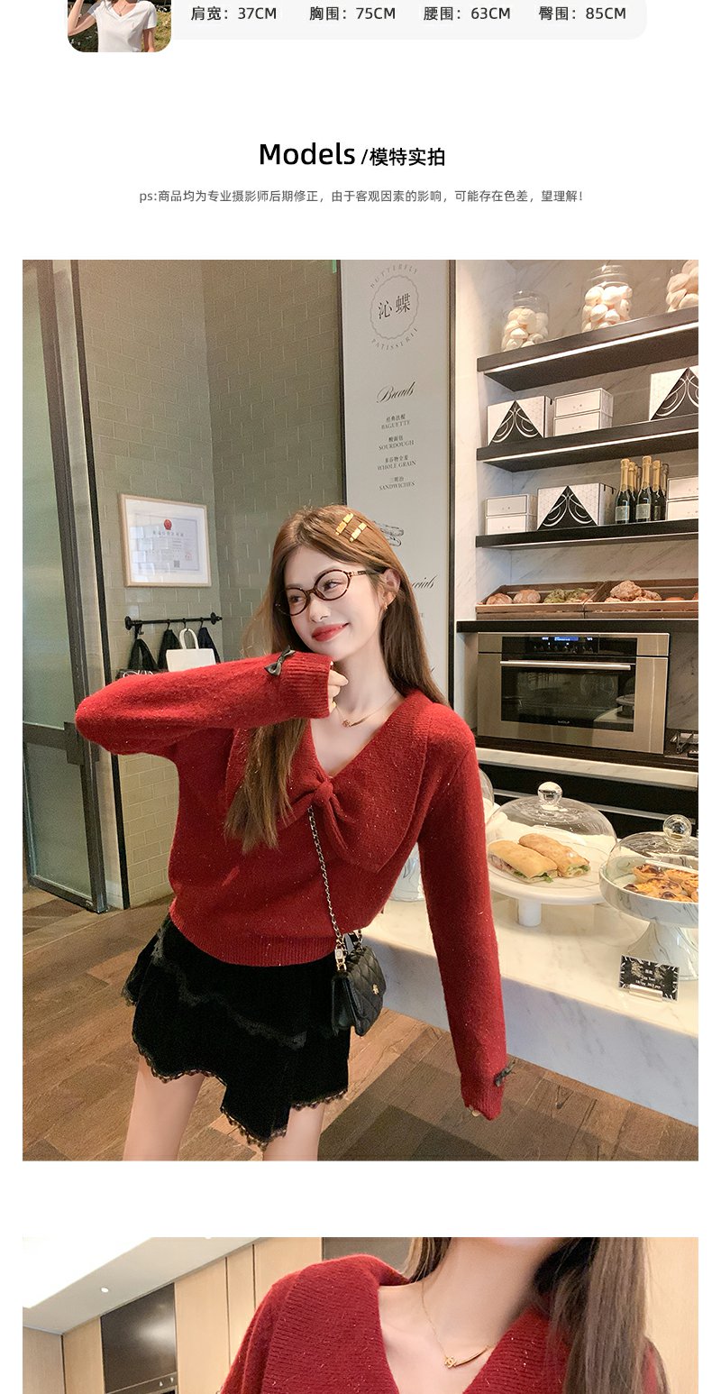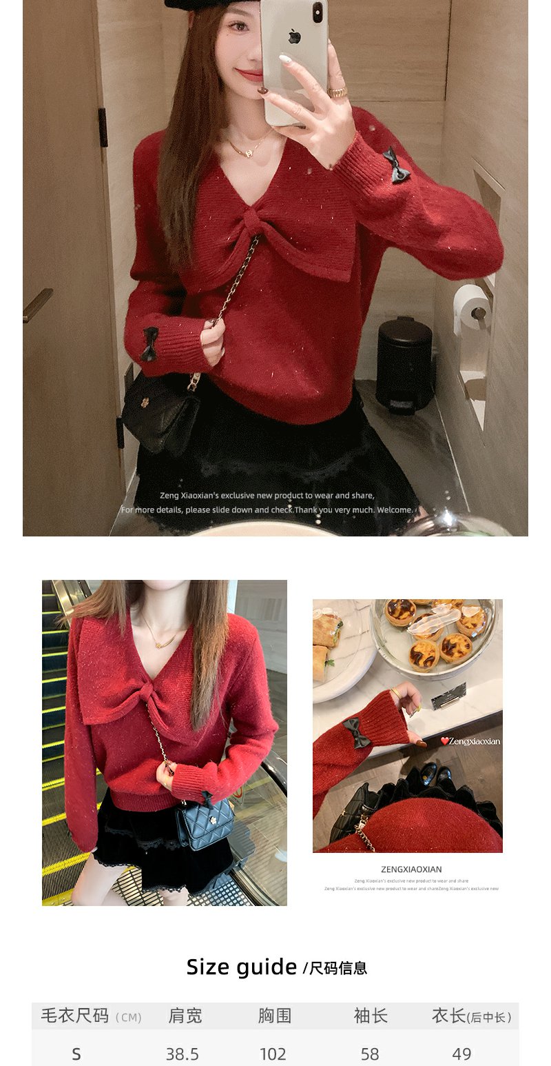 <曾小咸推荐> 2.19 现货秒杀 !微信超特价! 蝴蝶结v领毛衣 日常199.99 立减110 秒杀89.99!!