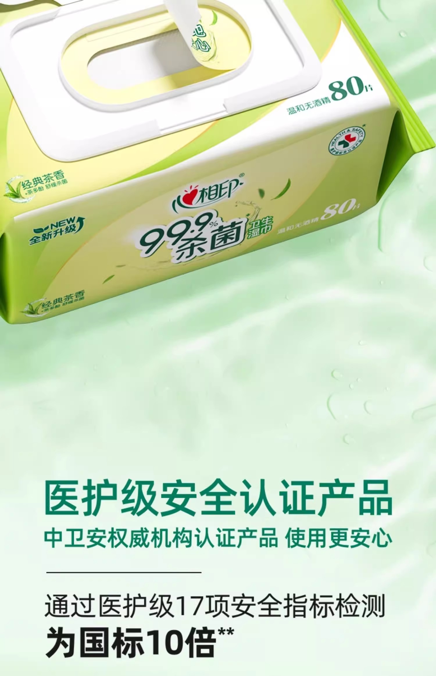 【自营】 心相印 卫生系列湿巾 99.9杀菌(经典茶香) 80片/包