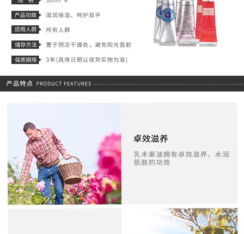 乳木果护手霜 30ml*2+玫瑰皇后润手霜 30ml*2+甜蜜樱花润手霜 30ml*2