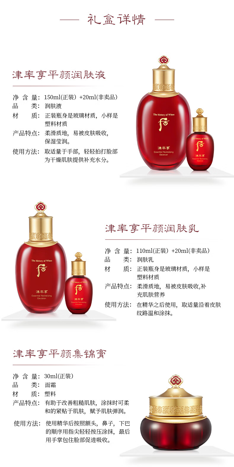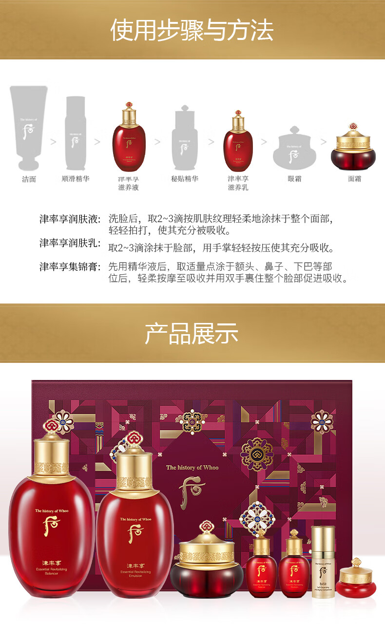 【海豚美购】WHOO后津率享水乳霜三件套 水150ml+乳110ml+霜20ml+水20ml +乳20ml + 洁面40ml +精华8ml/套