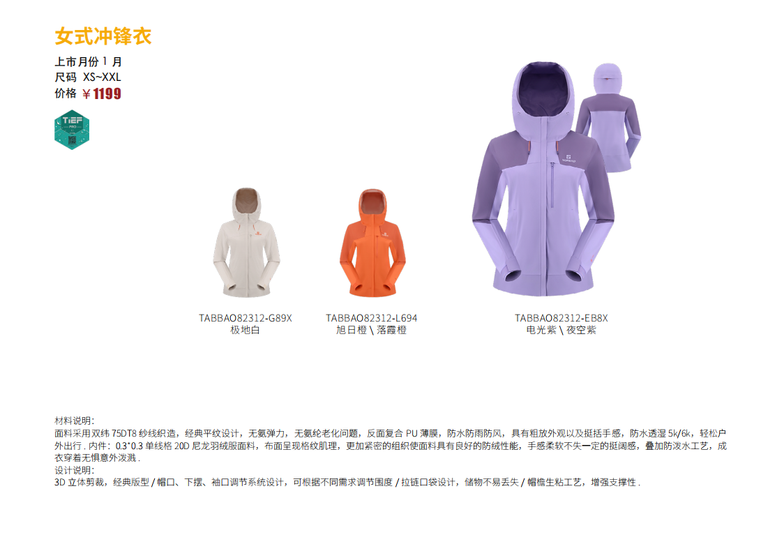 探路者女式冲锋衣TABBAO82312