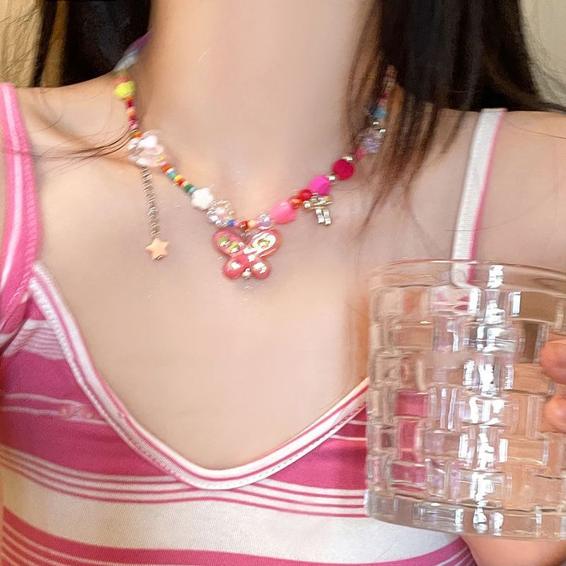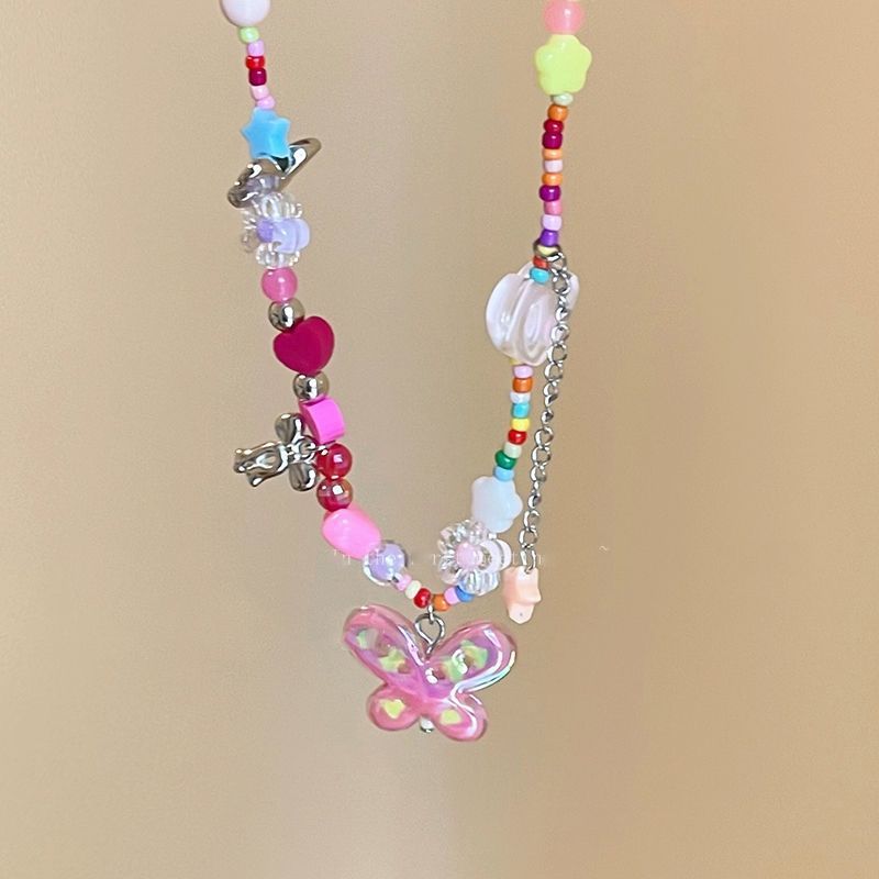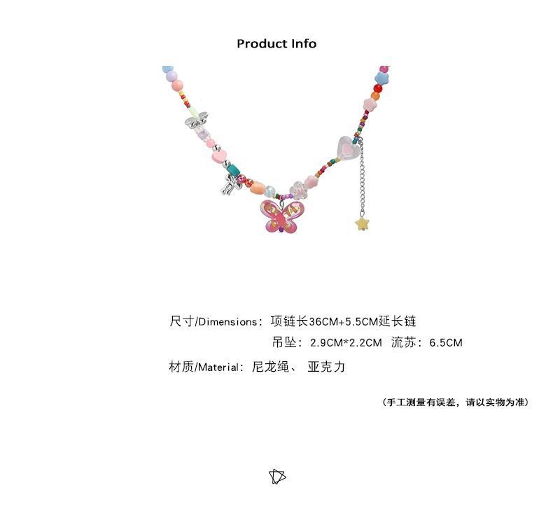「19.9包邮!夏日多巴胺」彩色爱心蝴蝶串珠项链 女新款潮锁骨链甜妹颈链G时尚饰品