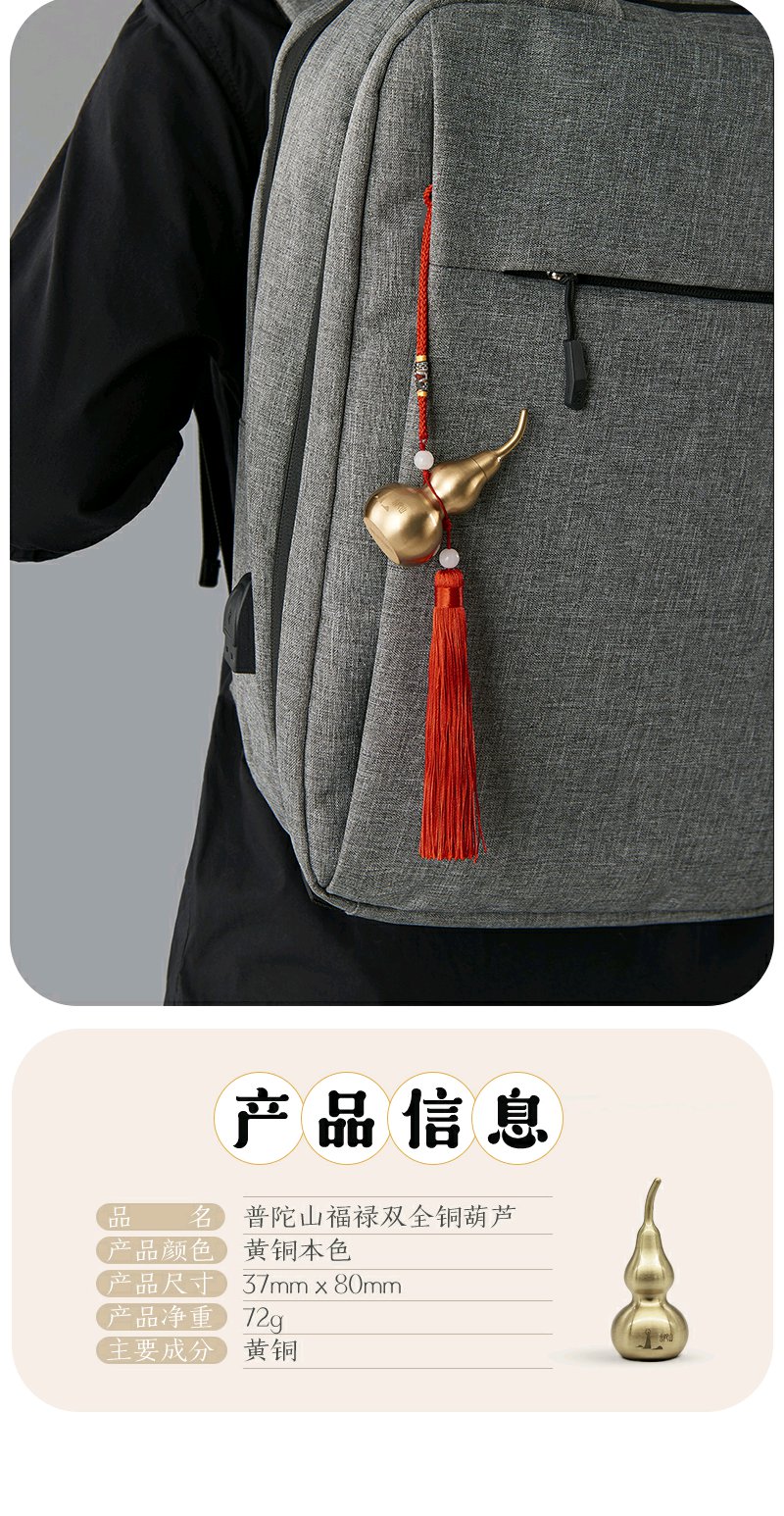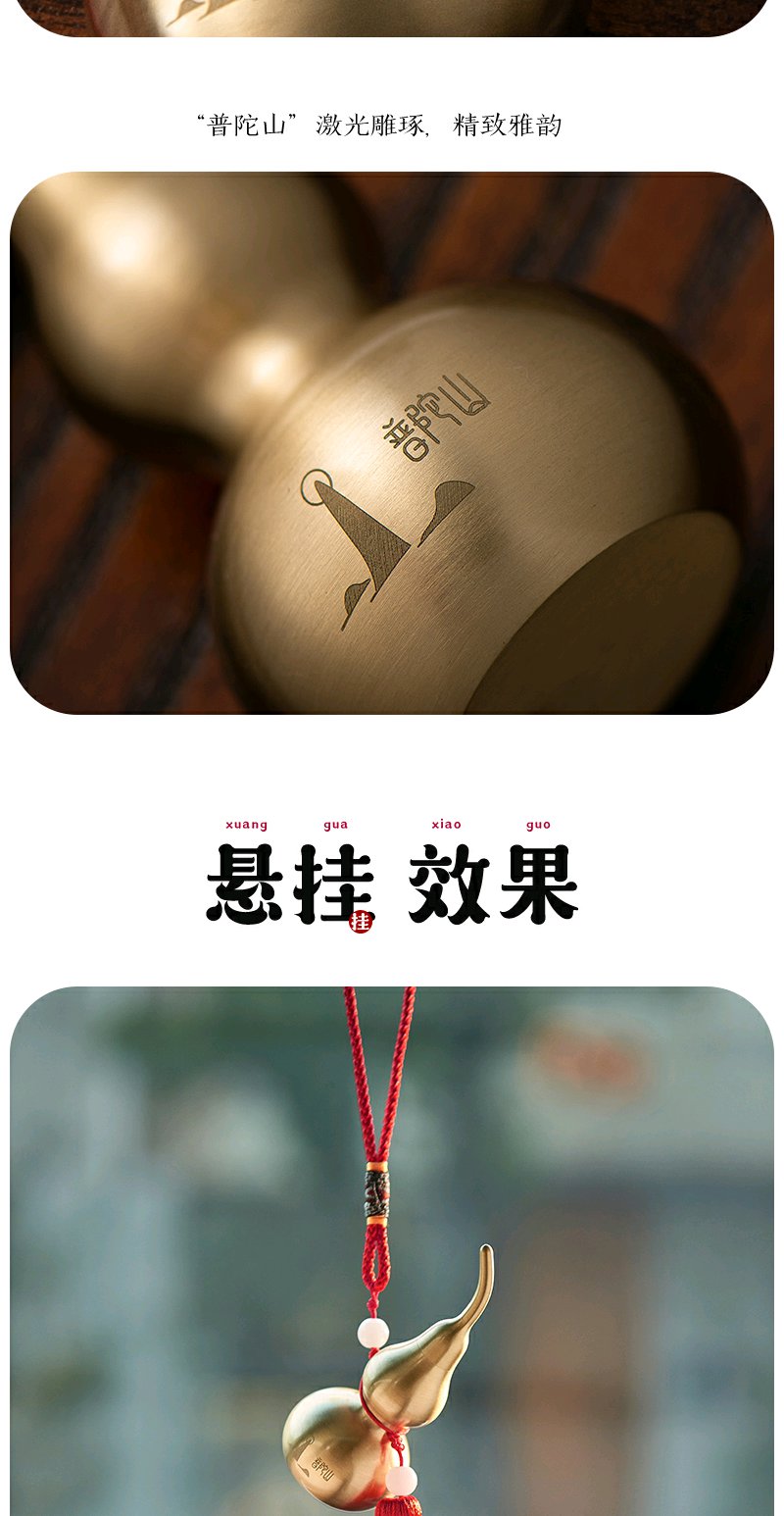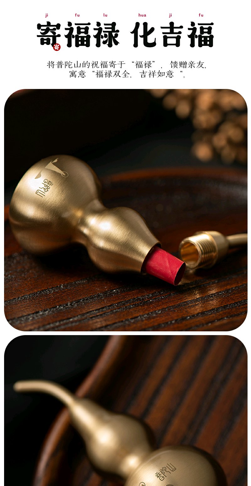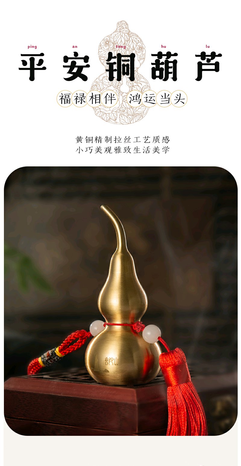 朱府铜艺普陀山系列平安铜葫芦开口小摆件书房办公桌转运装饰招财