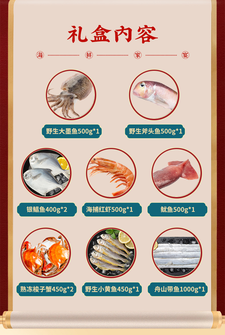 鲜到鲜得舟山海鲜礼盒 多款海鲜齐发 鲜嫩 海鲜 礼盒