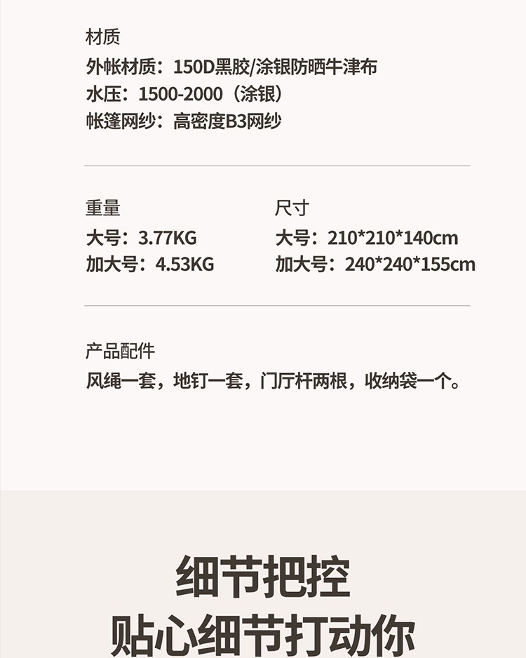 徽羚羊 云海流沙金四角3-4人涂银帐篷 2.1*2.1m(大号)HLY-ZP-22040