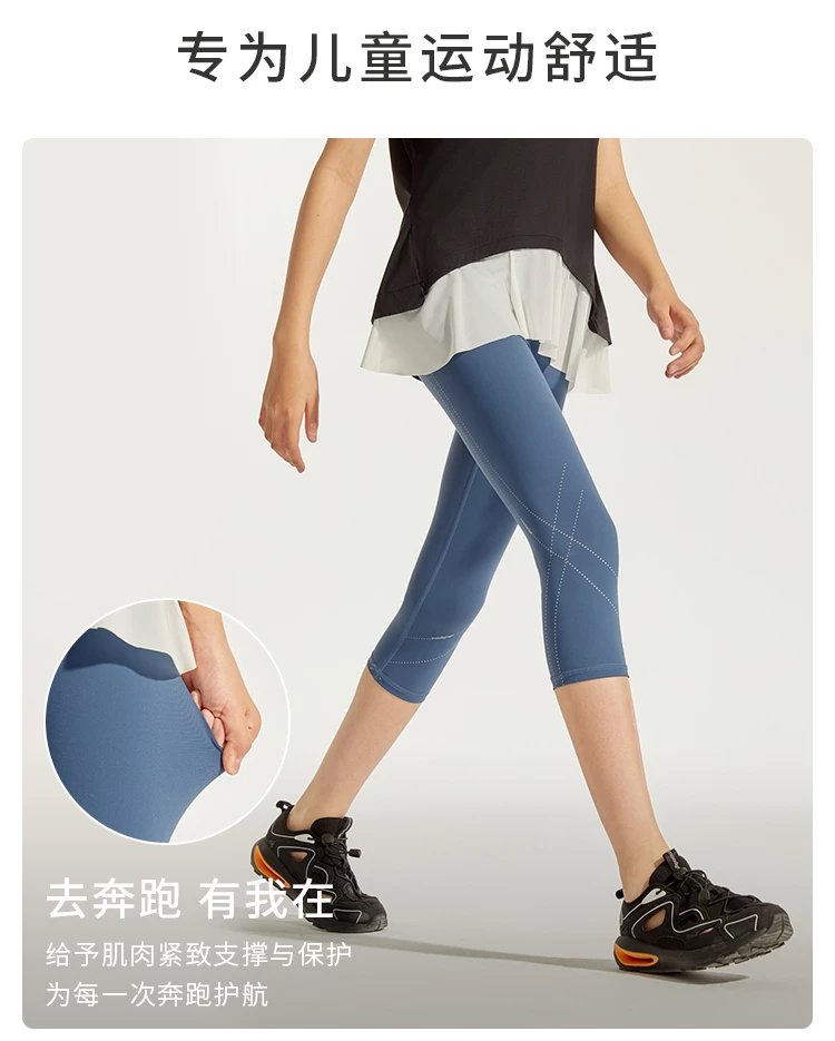 【24年夏新品】moodytiger女童速干运动裤子夏新款耐磨弹力七分裤42211421