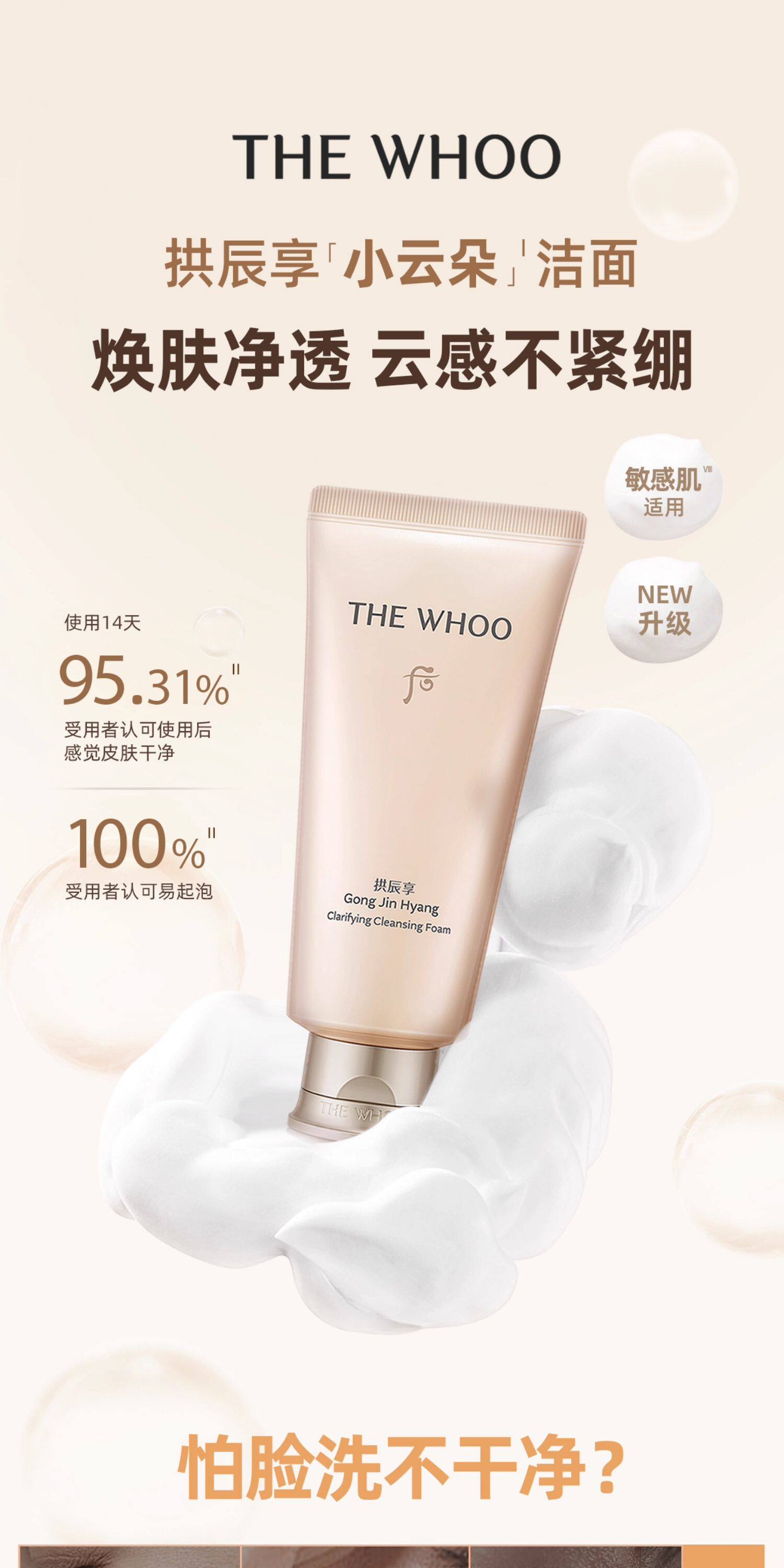 Whoo后 拱辰享洗面奶气韵生润颜泡沫洁面膏 180ml【不足200元订单,默认顺丰快递到付】