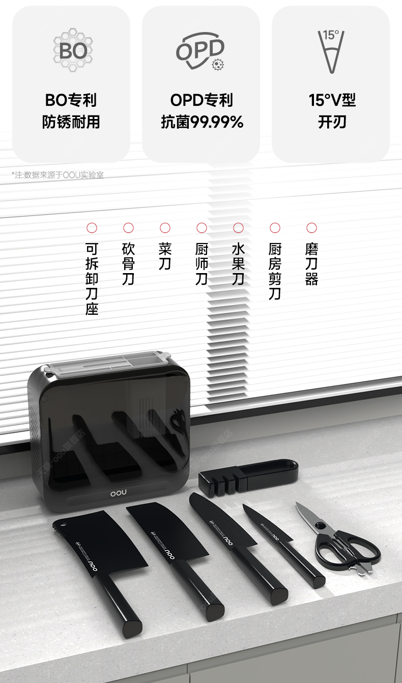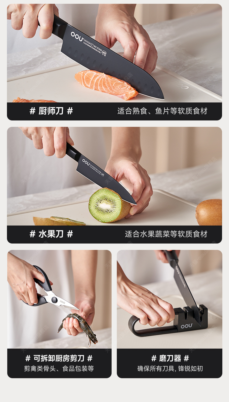 【德国钢材刀具套装7件套】OOU刀具厨房套装组合菜刀家用厨具全套切菜刀水果刀德国钢材厨刀