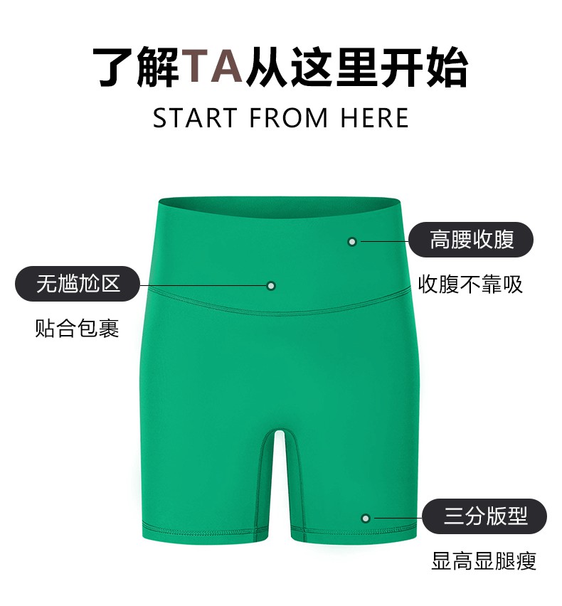 beemen无T线夏季瑜伽短裤女高腰收腹裤双面磨毛紧身弹力运动健身三分裤