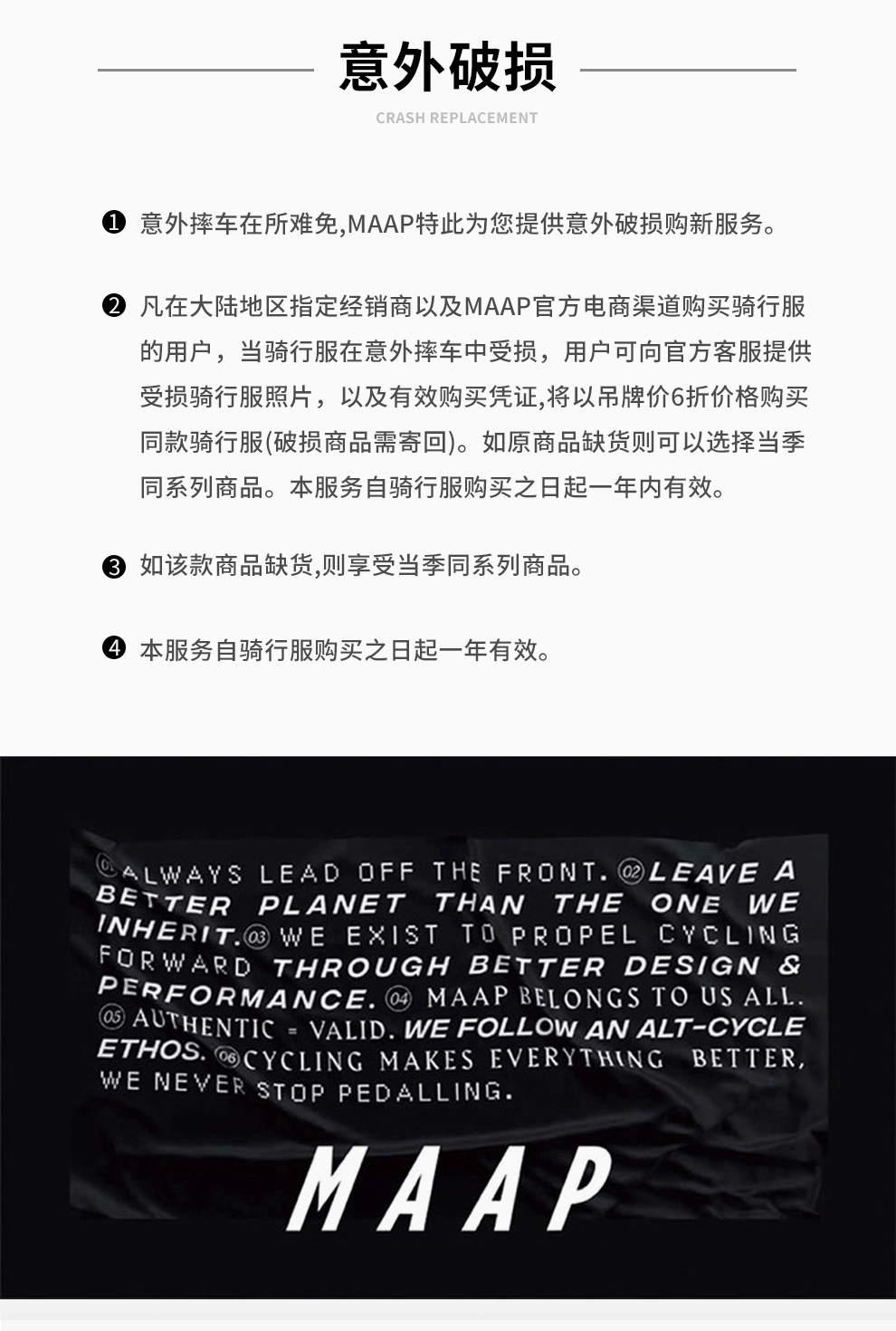 - MAAP作为澳洲功能性骑行服,其出色的时尚设计元素为骑行生活增添色彩。MAAP在为专业车手提升性能表现方面也毫不妥协。