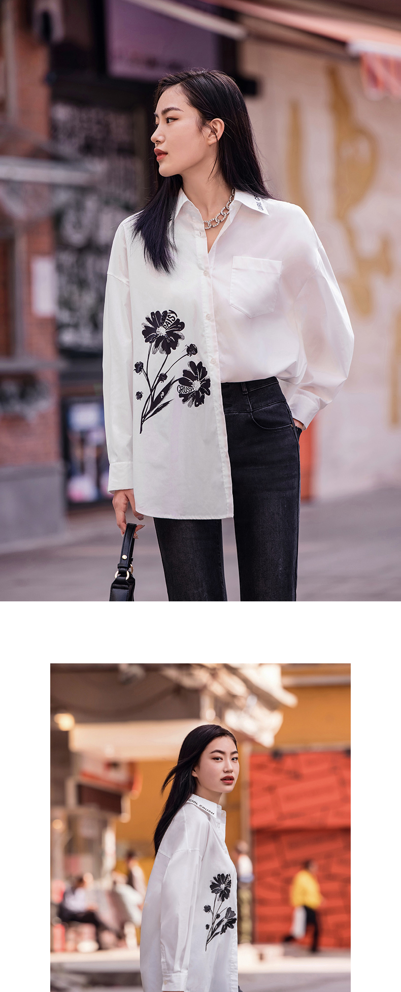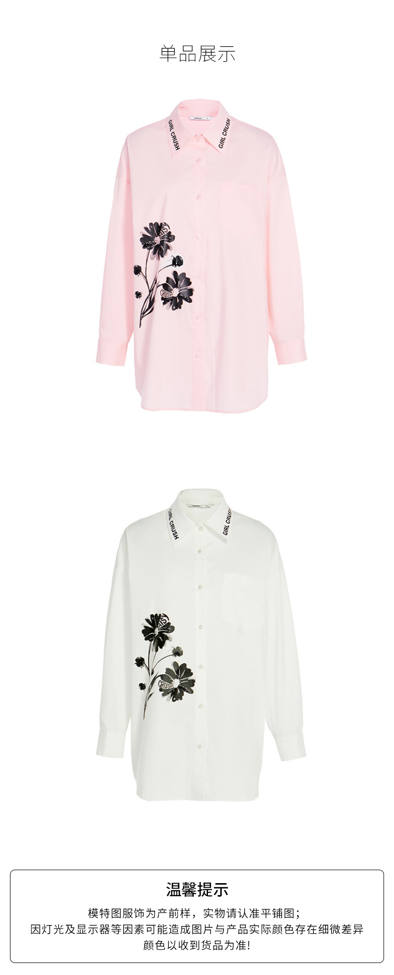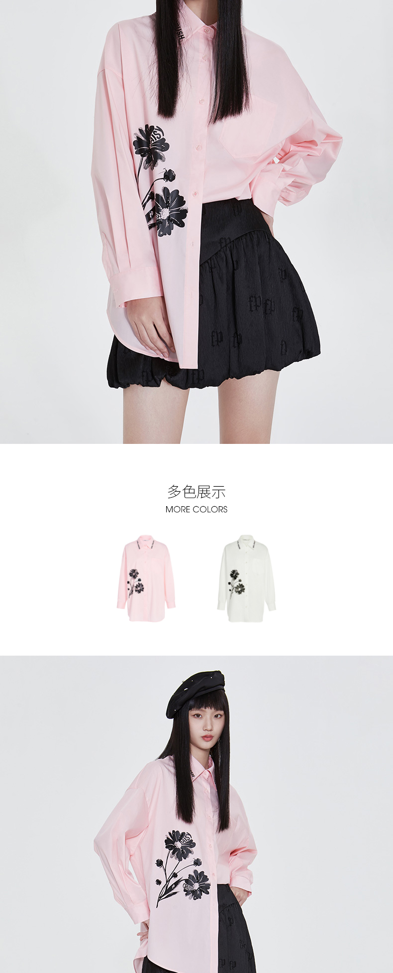 FIVE PLUS新款女夏装气质印花中长衬衫女宽松直筒开襟上衣潮2WN1010220