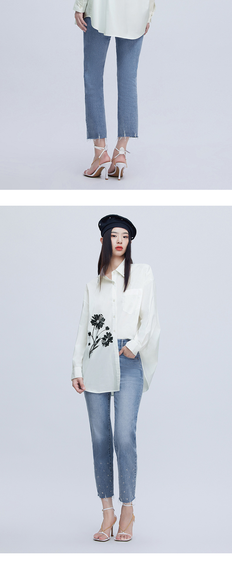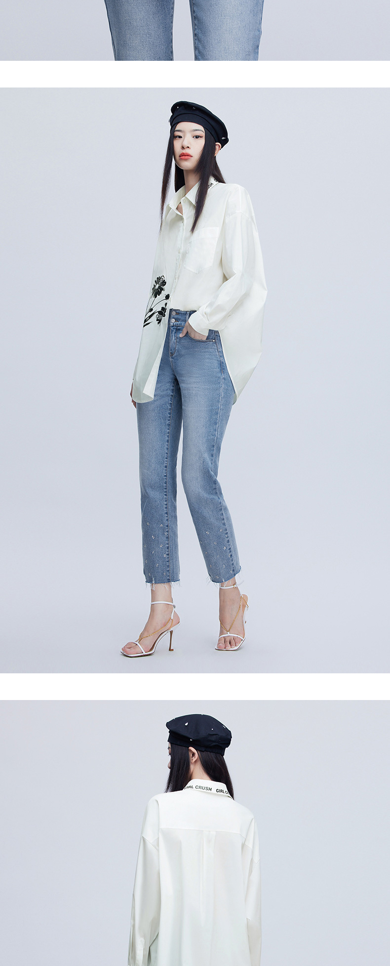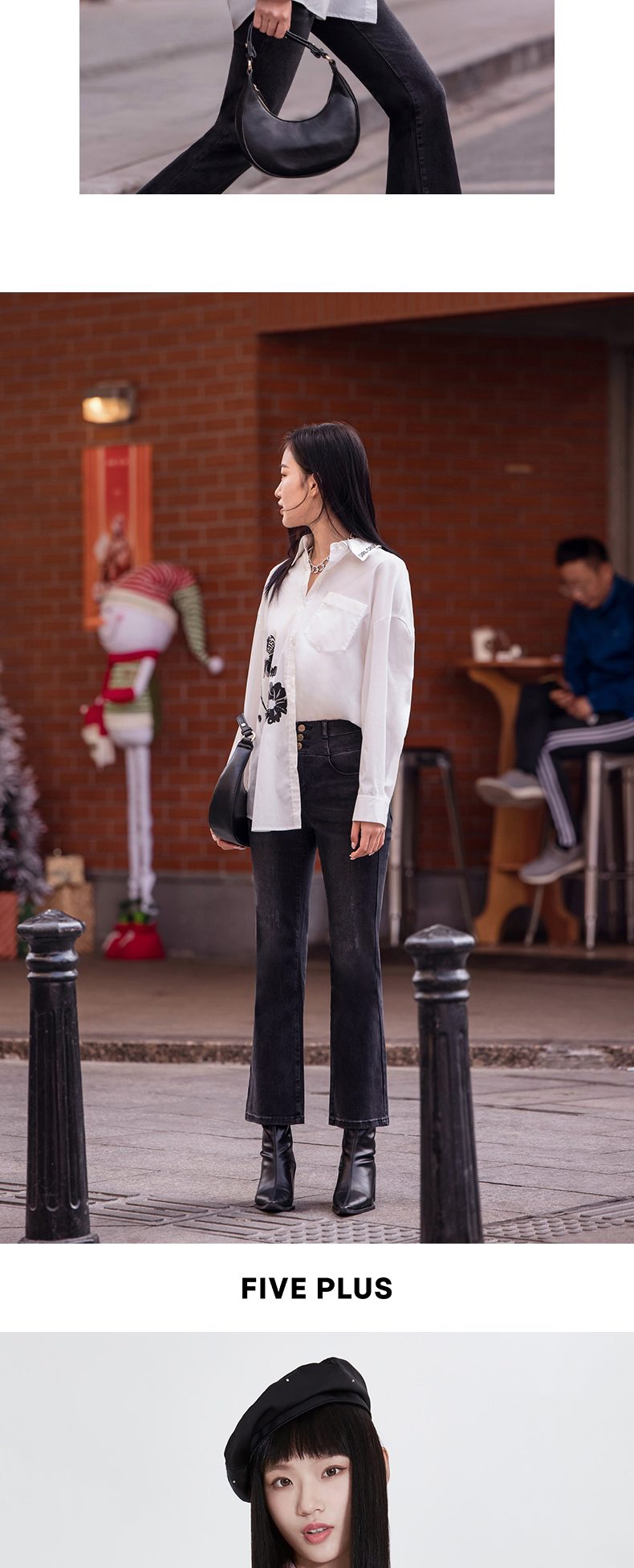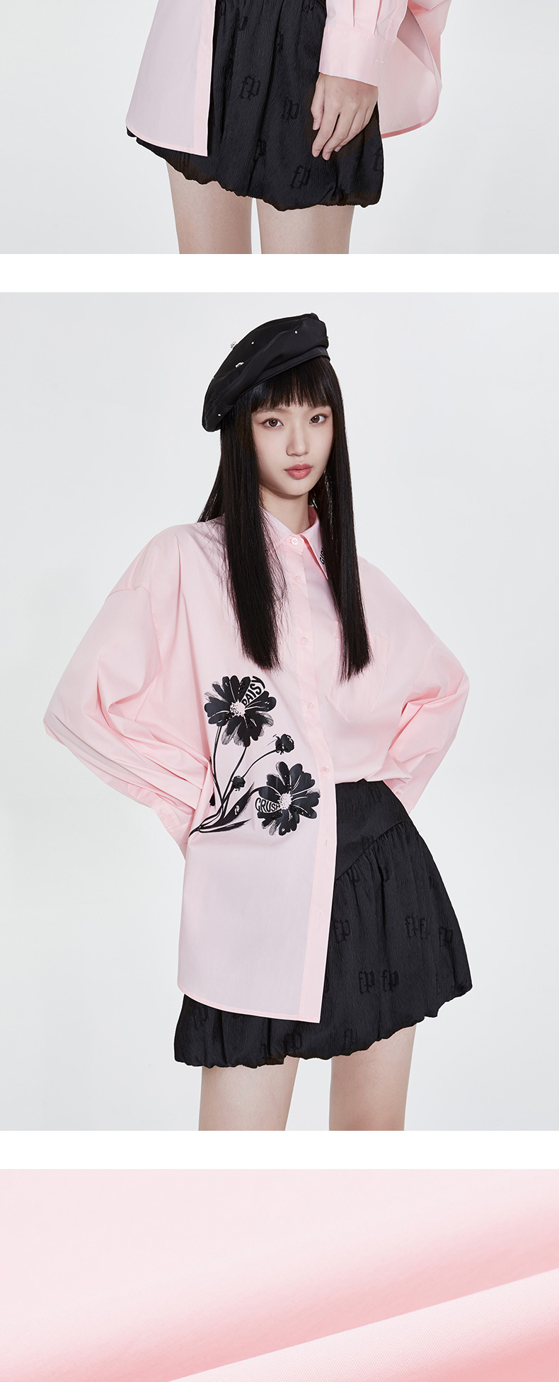 FIVE PLUS新款女夏装气质印花中长衬衫女宽松直筒开襟上衣潮2WN1010220