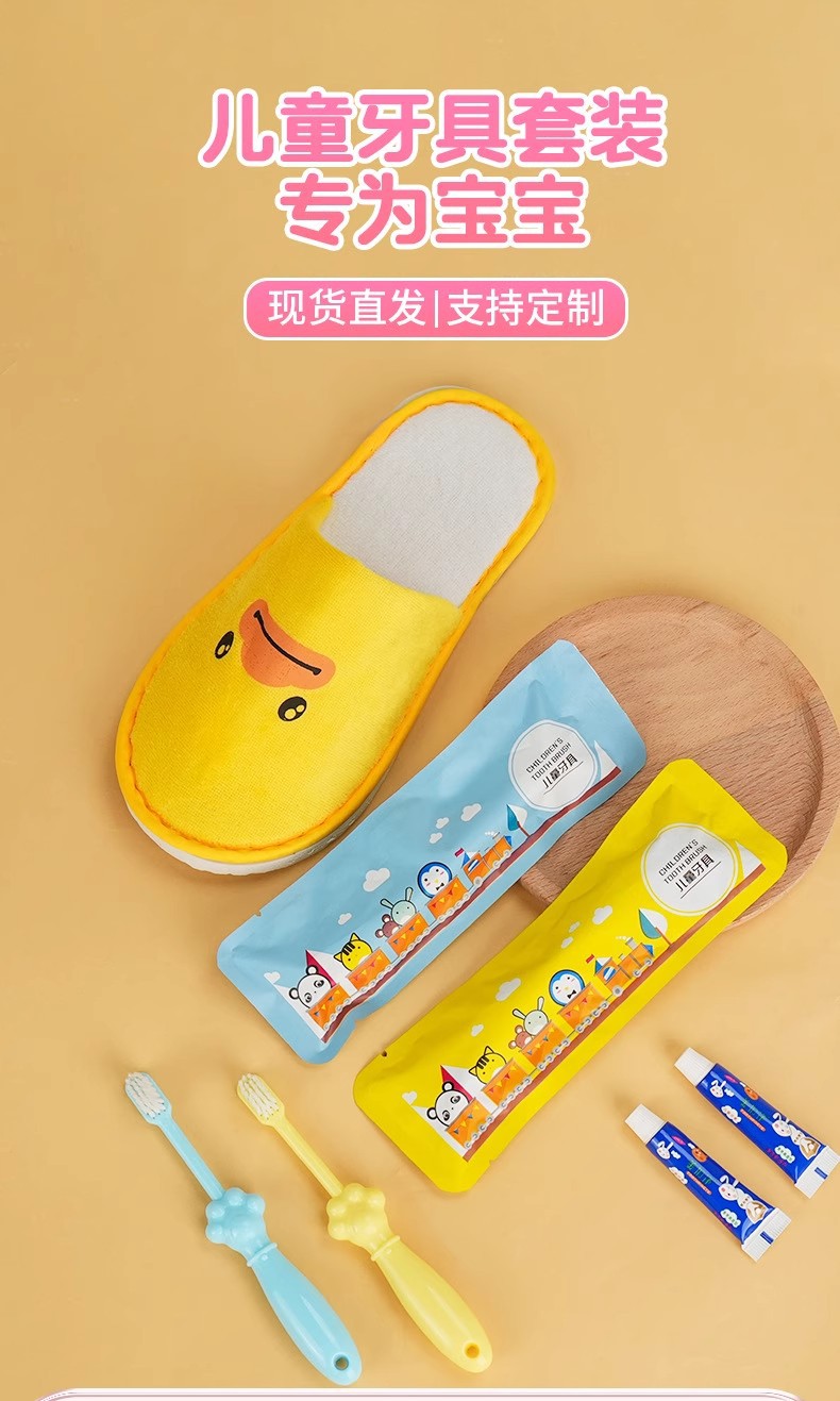 儿童一次性牙刷带牙膏卡通软毛五星级酒店专用一次性儿童拖鞋加厚